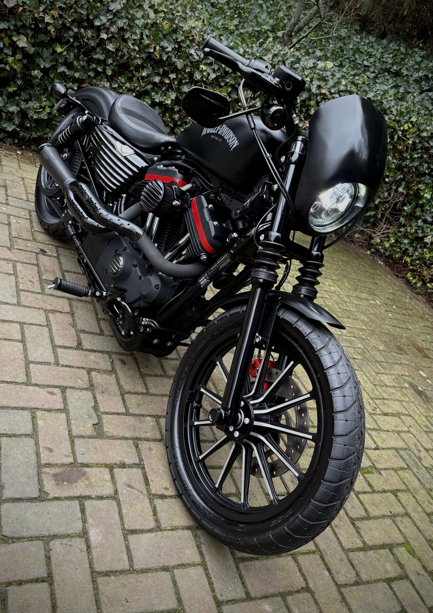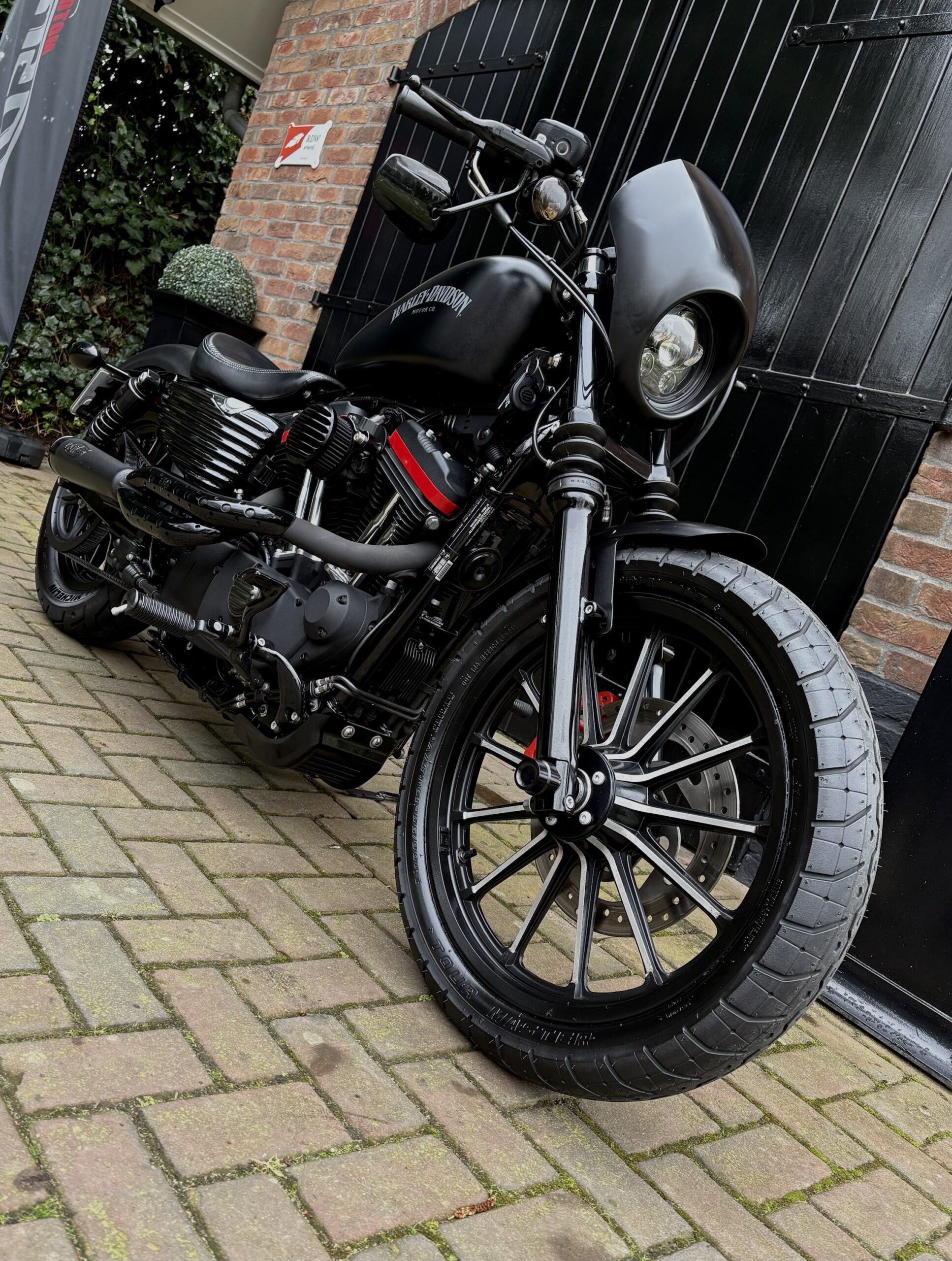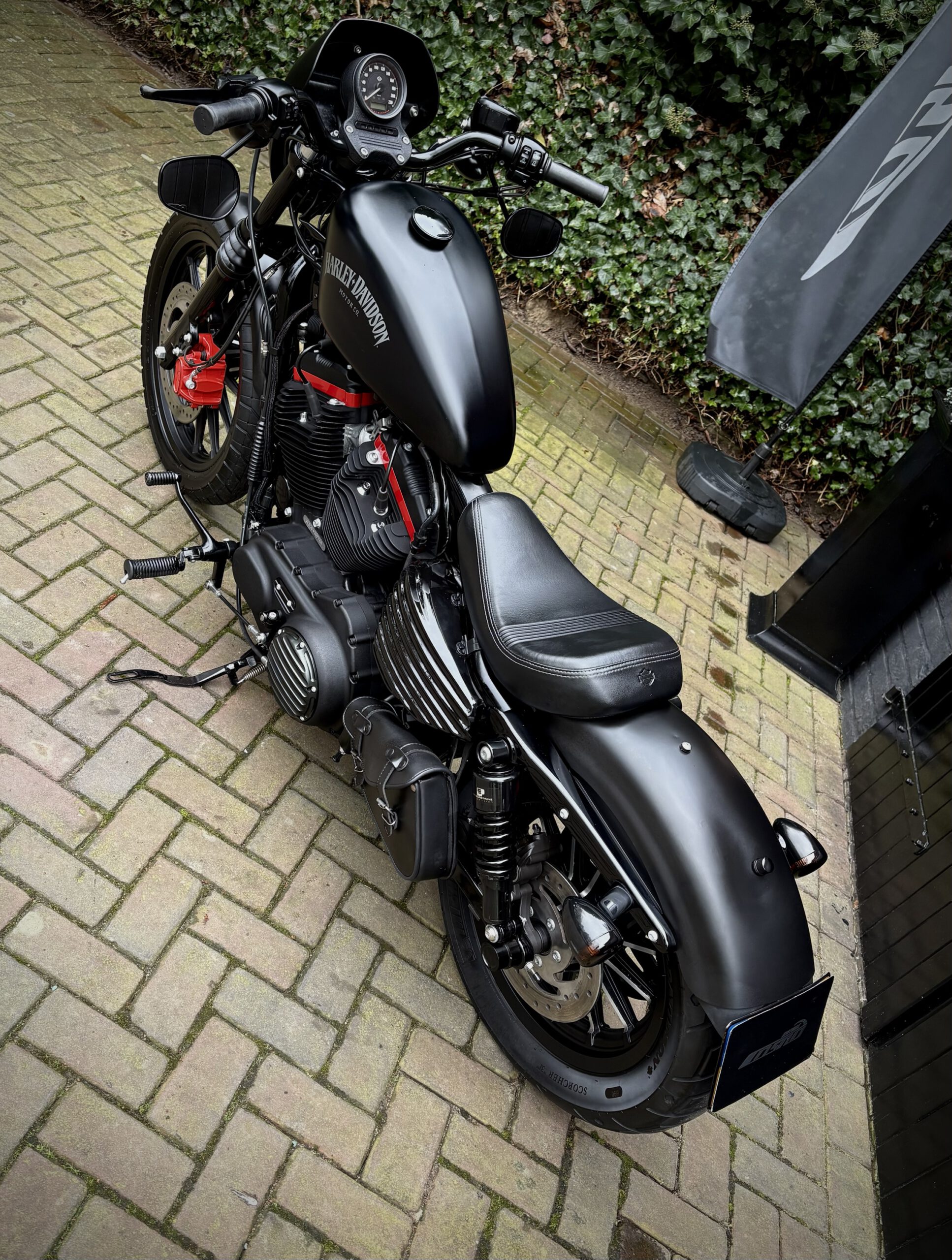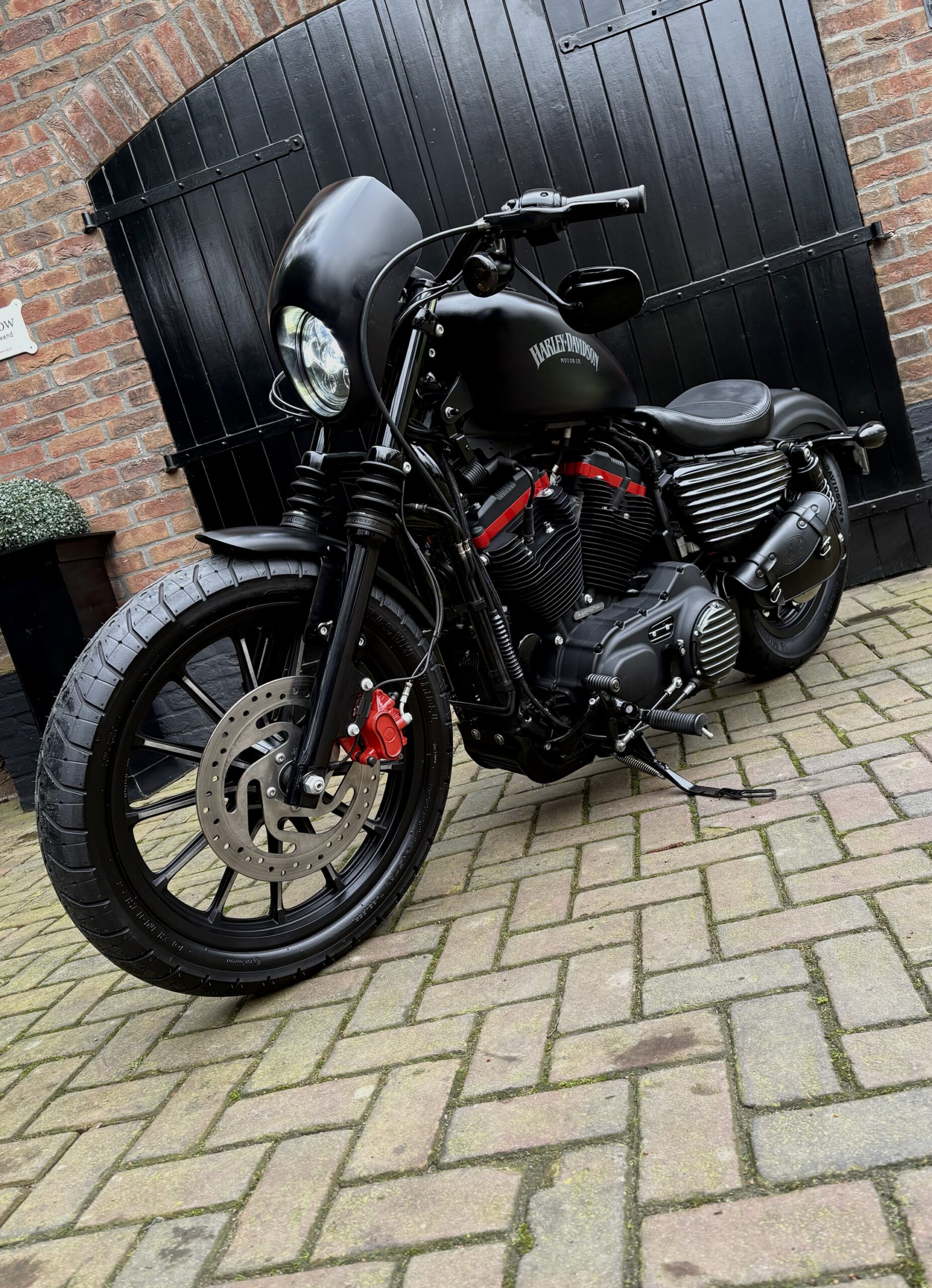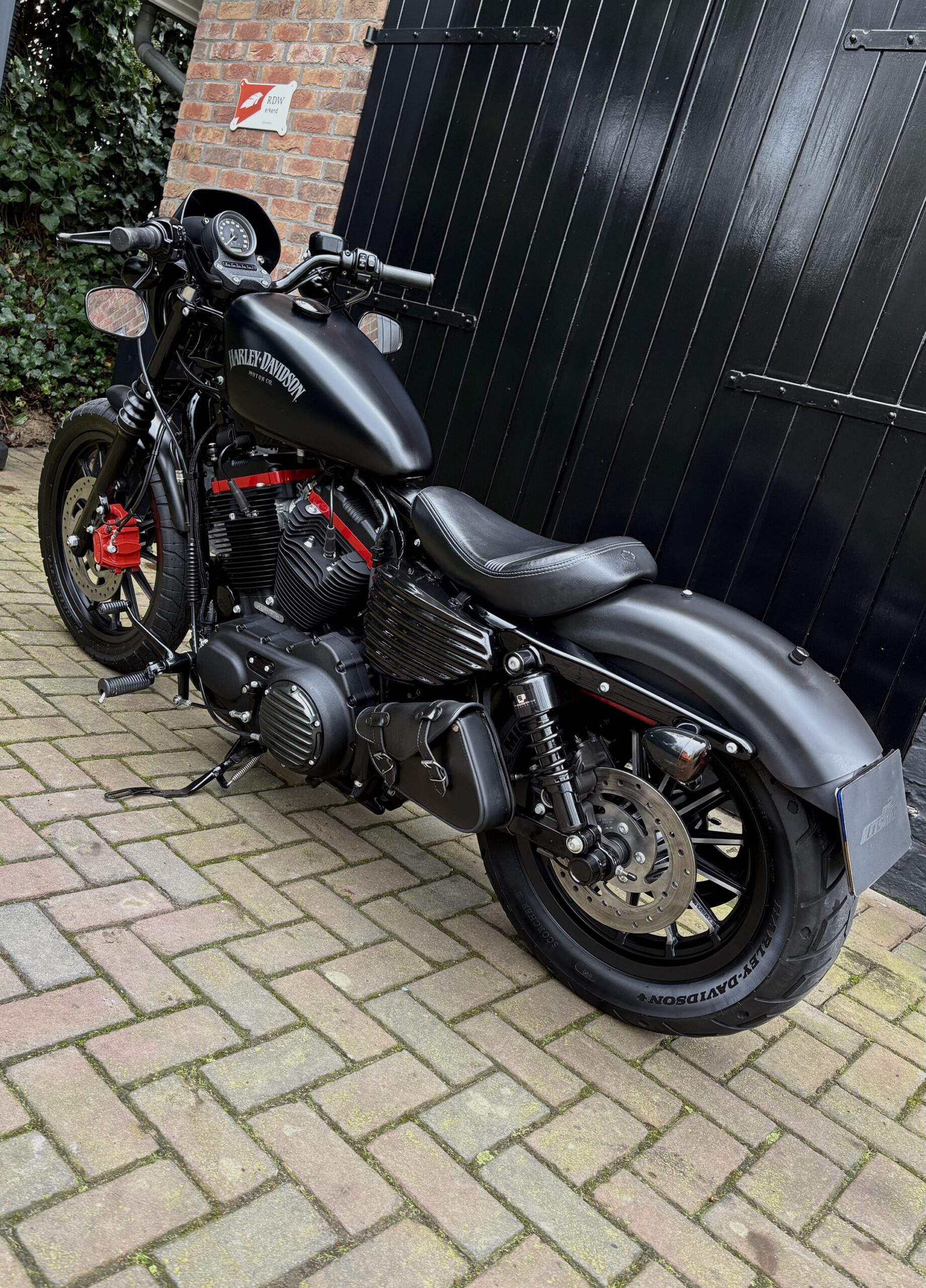 Hele gave Sportster welke is aangepast tot deze stoere bobber. Denim Matt Black gecombineerd met sportieve rode details. Deze motor is een echte eyecatcher en klinkt net zo bruut als hij eruitziet!