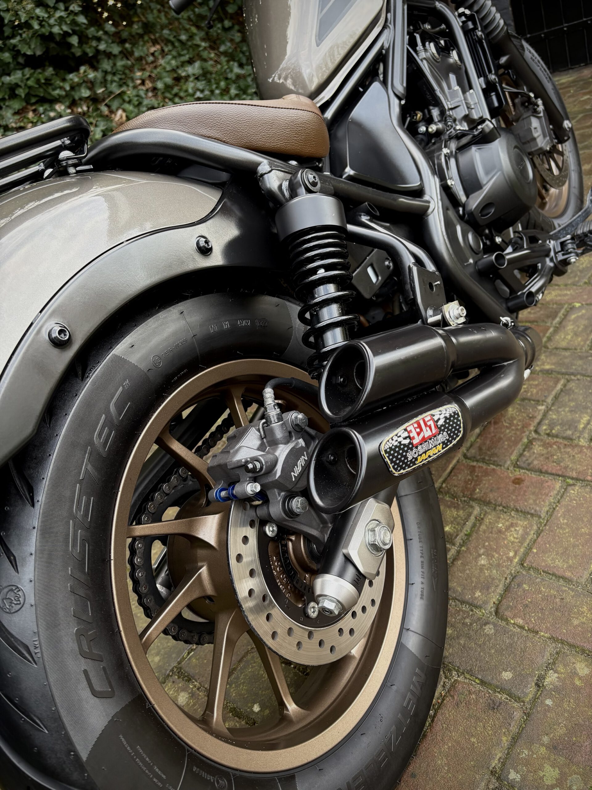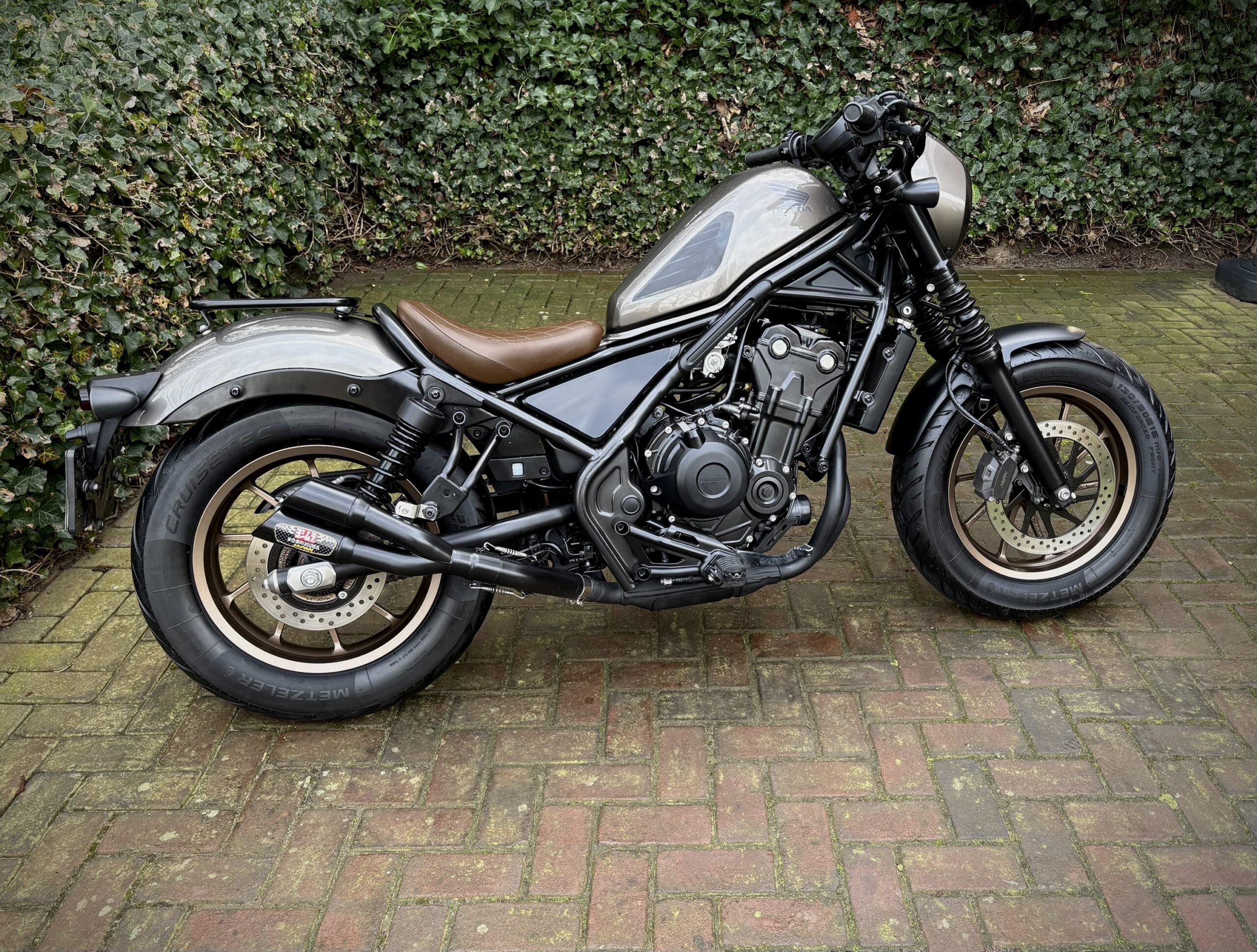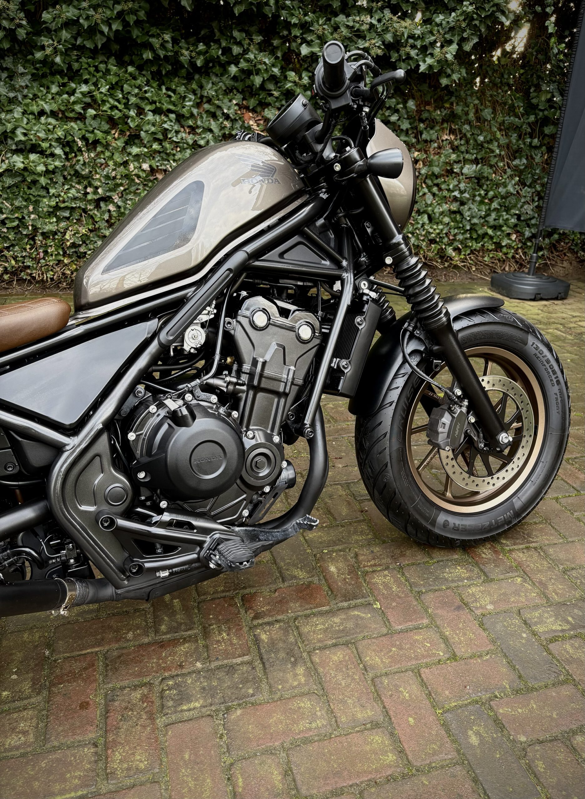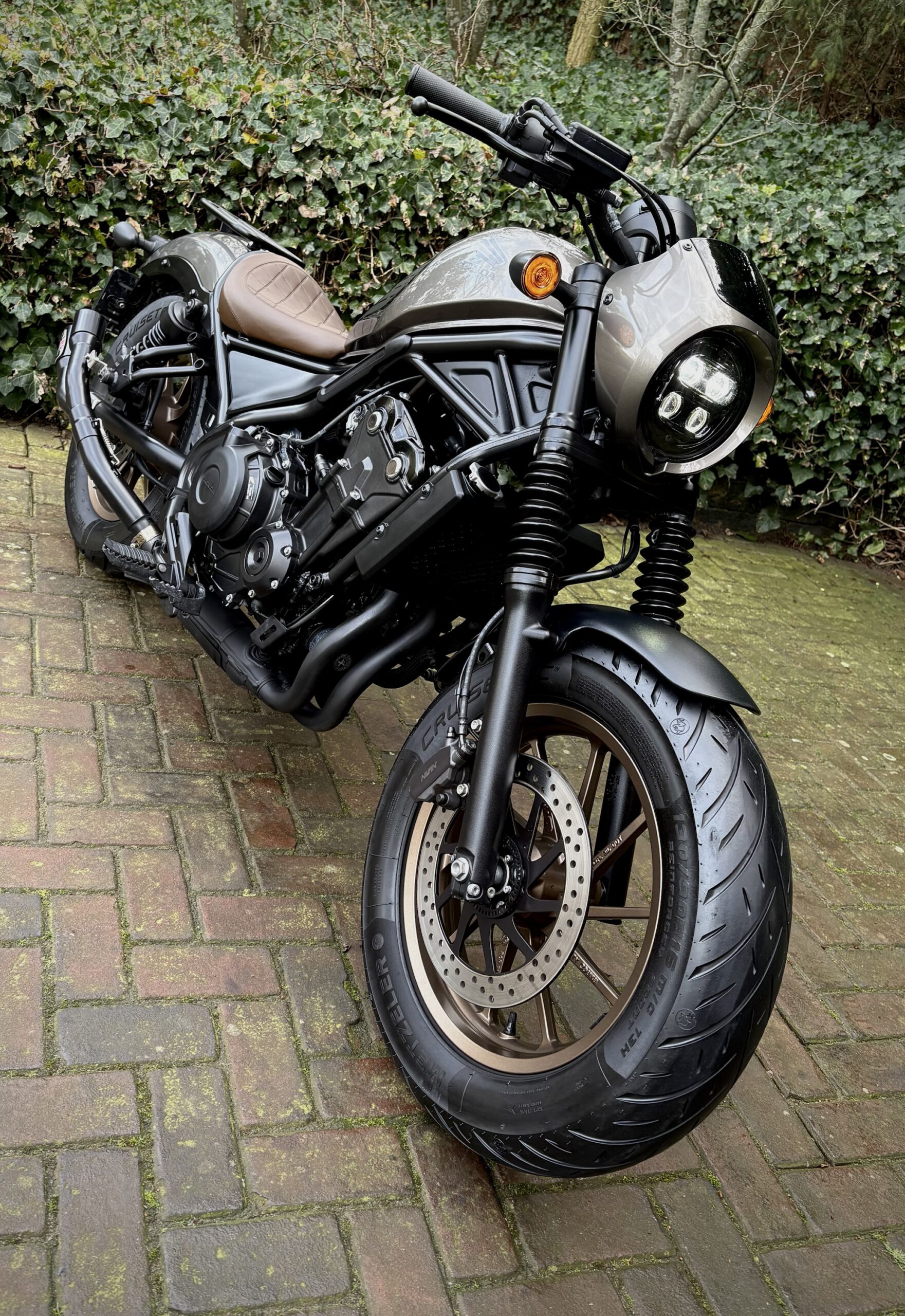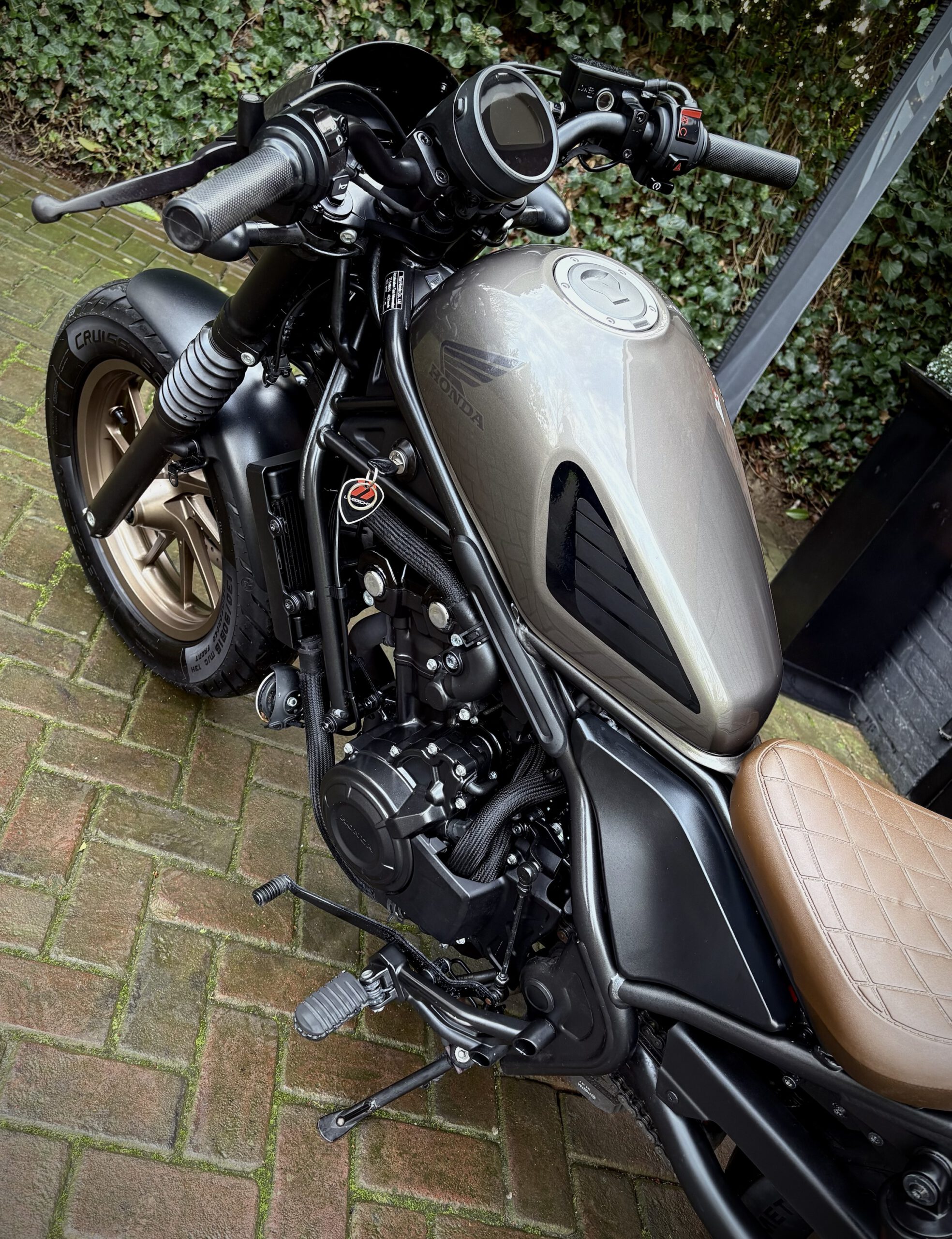 Gave CMX500 Rebel Special Edition, uitgevoerd in Titanium Metallic gecombineerd met bronskleurige velgen en een mooi bruin zadel.