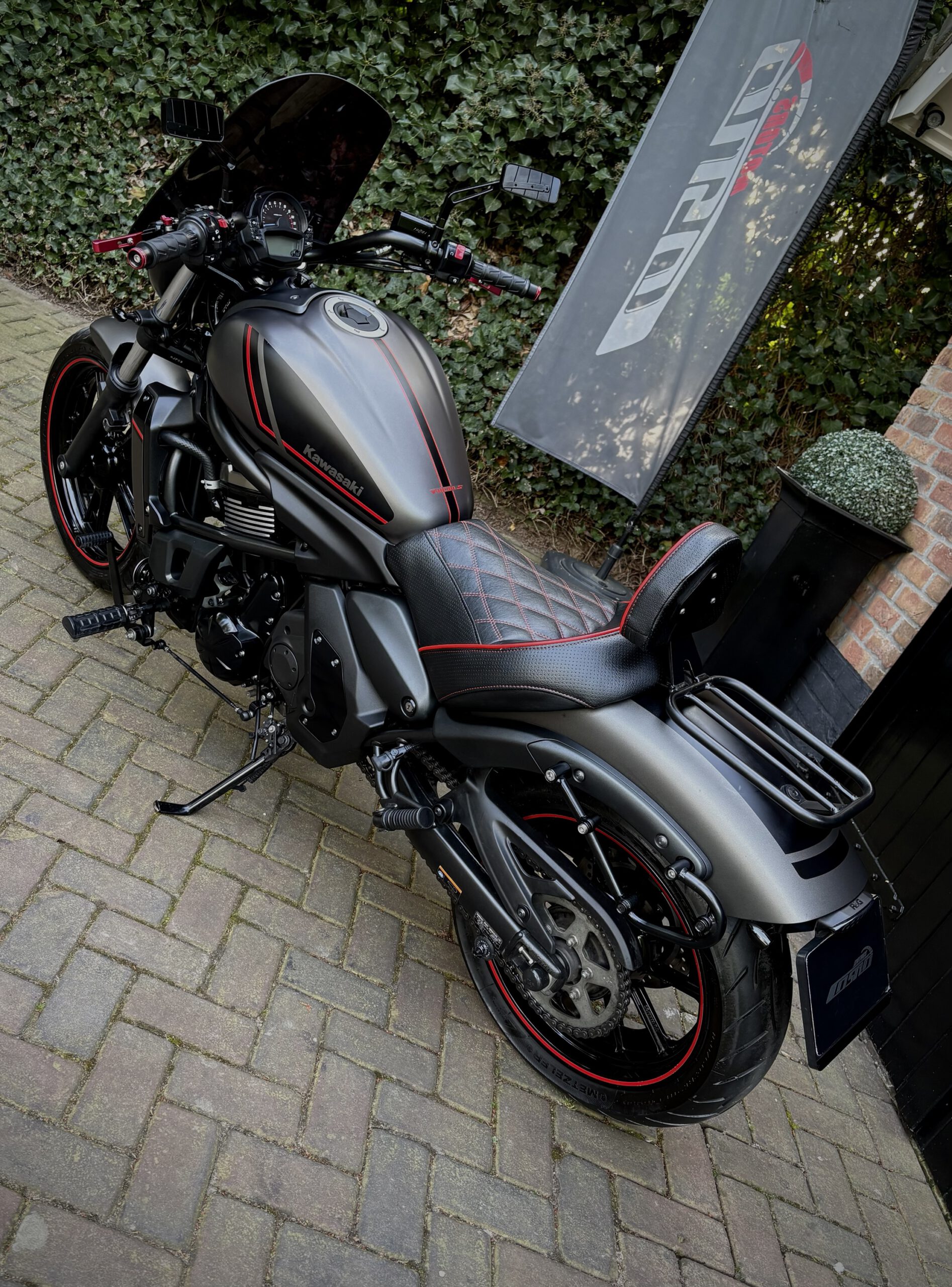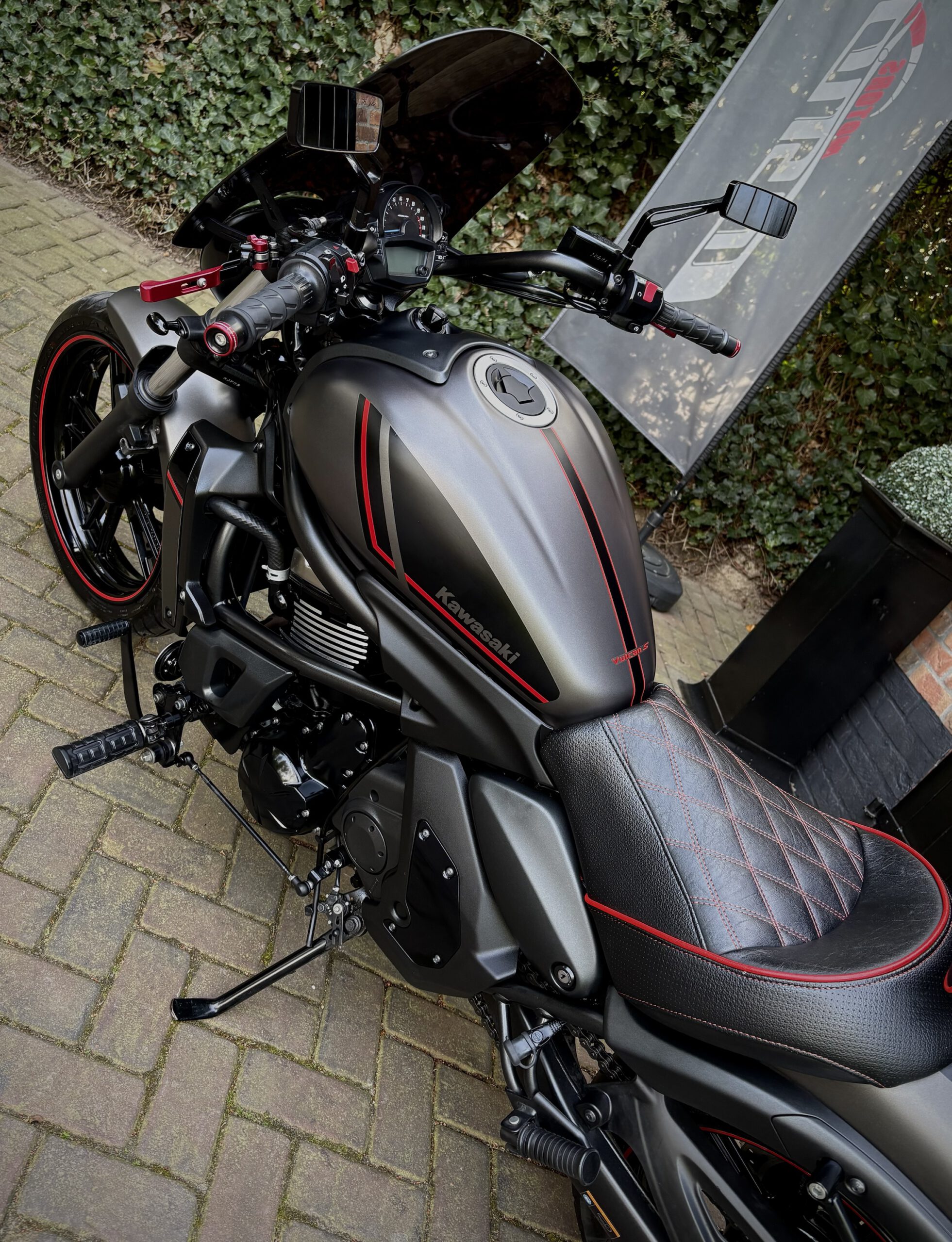 Deze Vulcan Special Editon is uitgevoerd in de gave kleurstelling Grey Metallic Satin in combinatie met hoogglans zwart en rode accenten, wat de motor een sportieve uitstraling geeft!