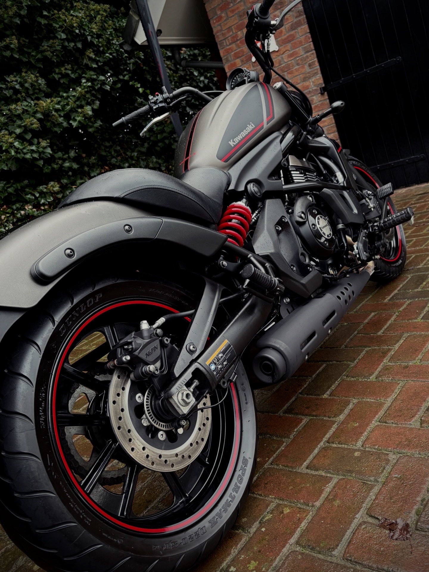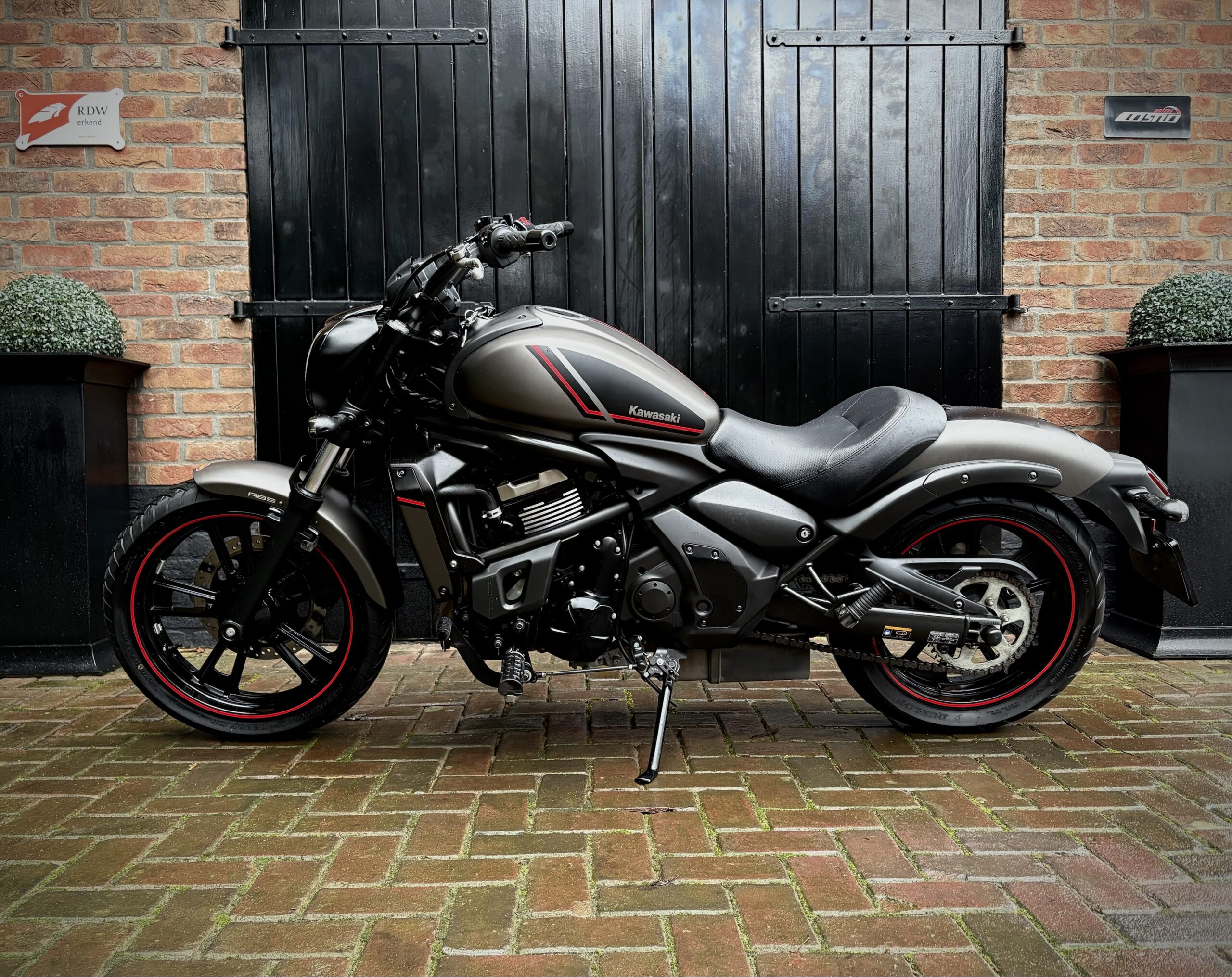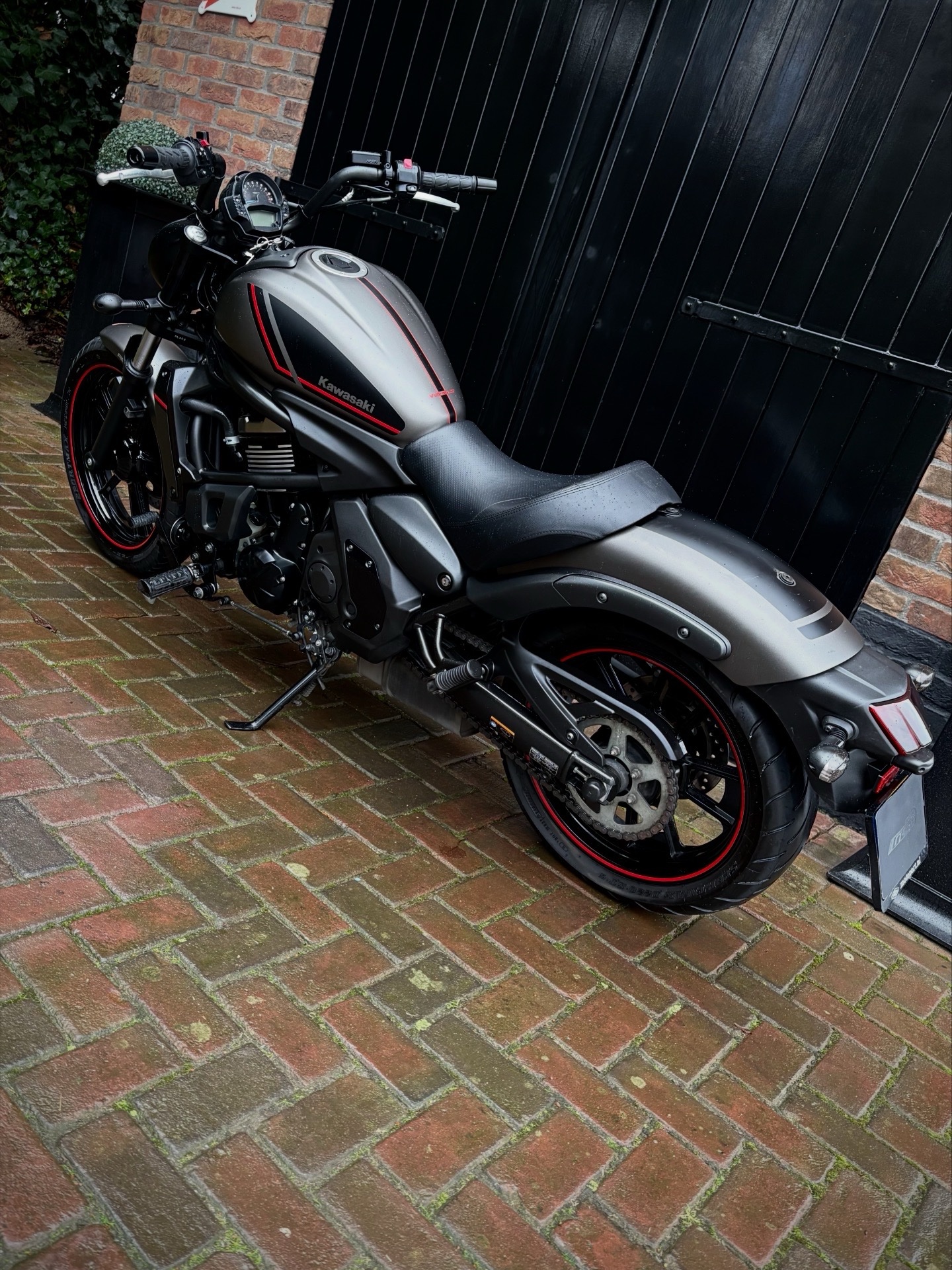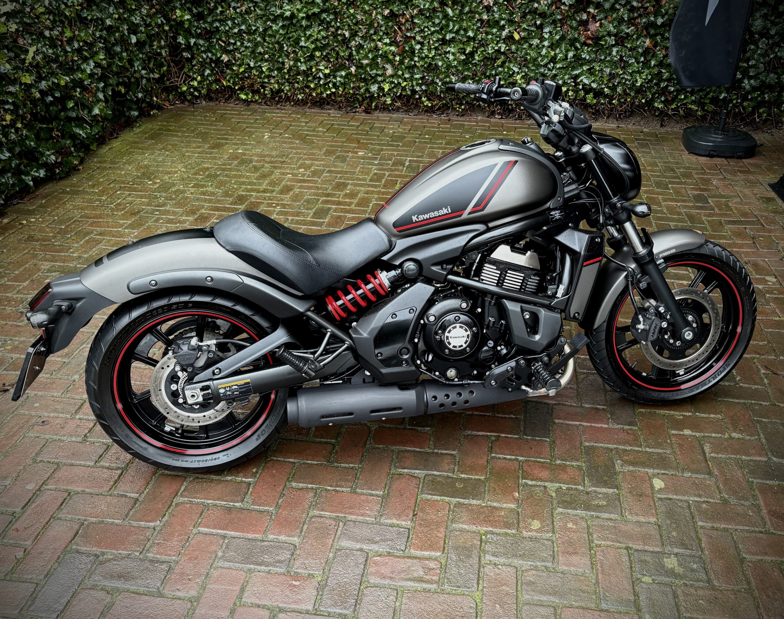 Deze Vulcan Special Editon is uitgevoerd in de gave kleurstelling Metallic Flat Raw Greystone in combinatie met hoogglans zwart en rode accenten, wat de motor een sportieve uitstraling geeft!