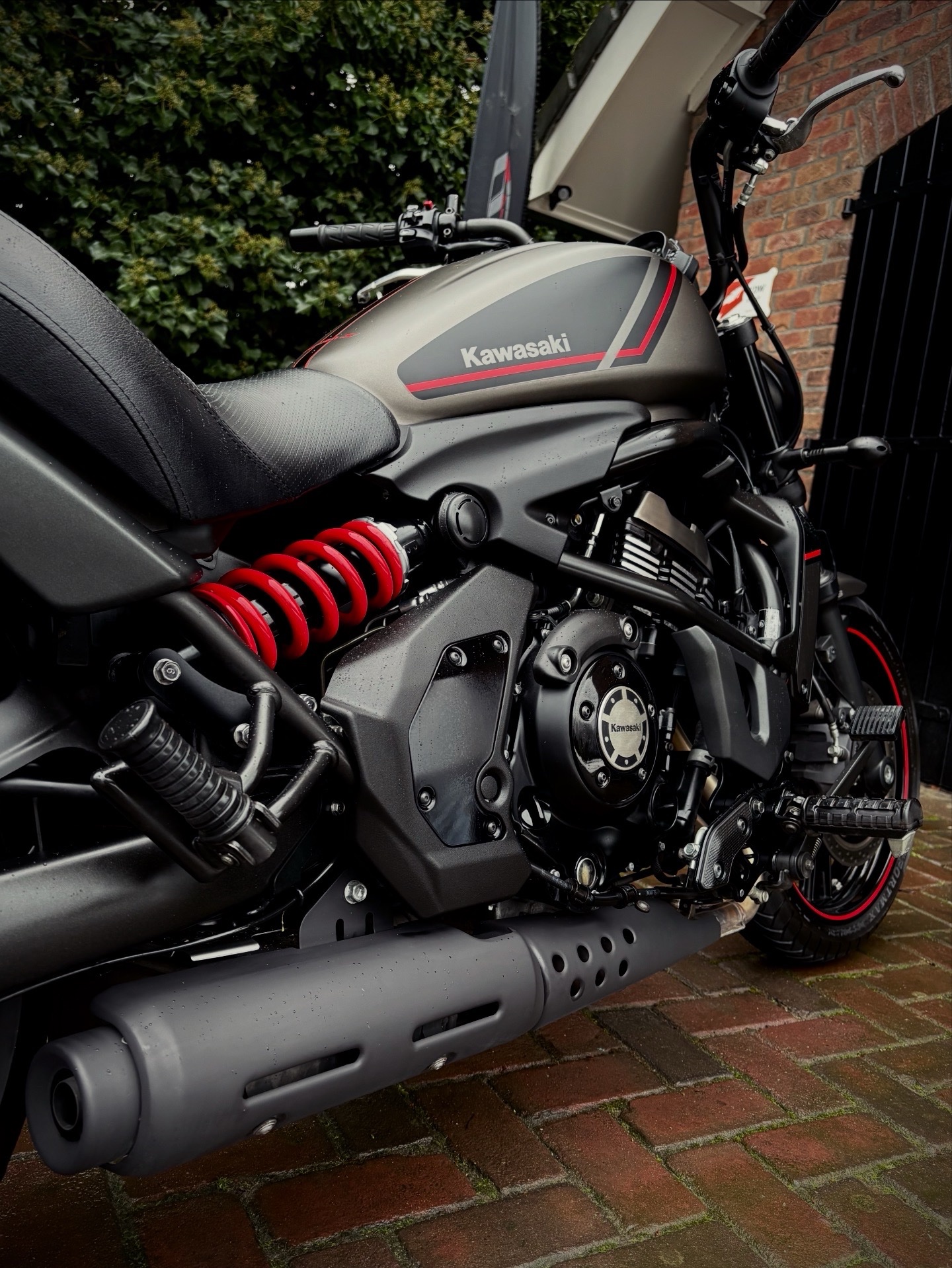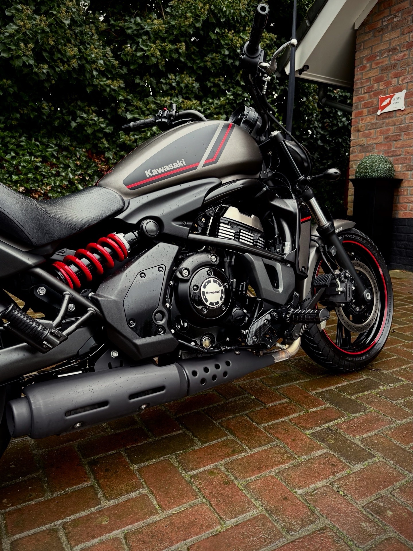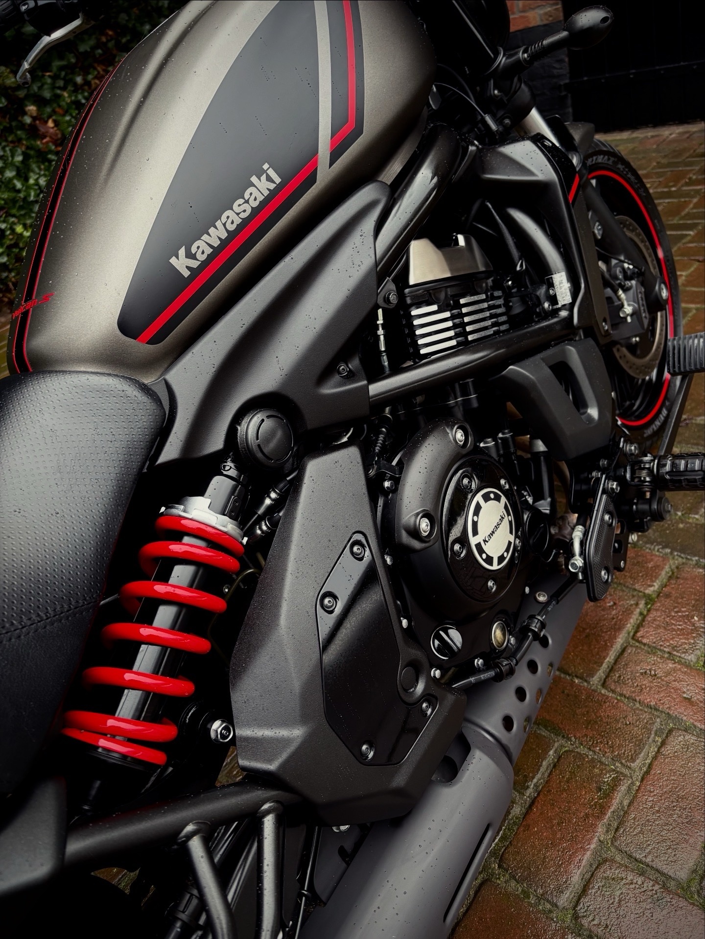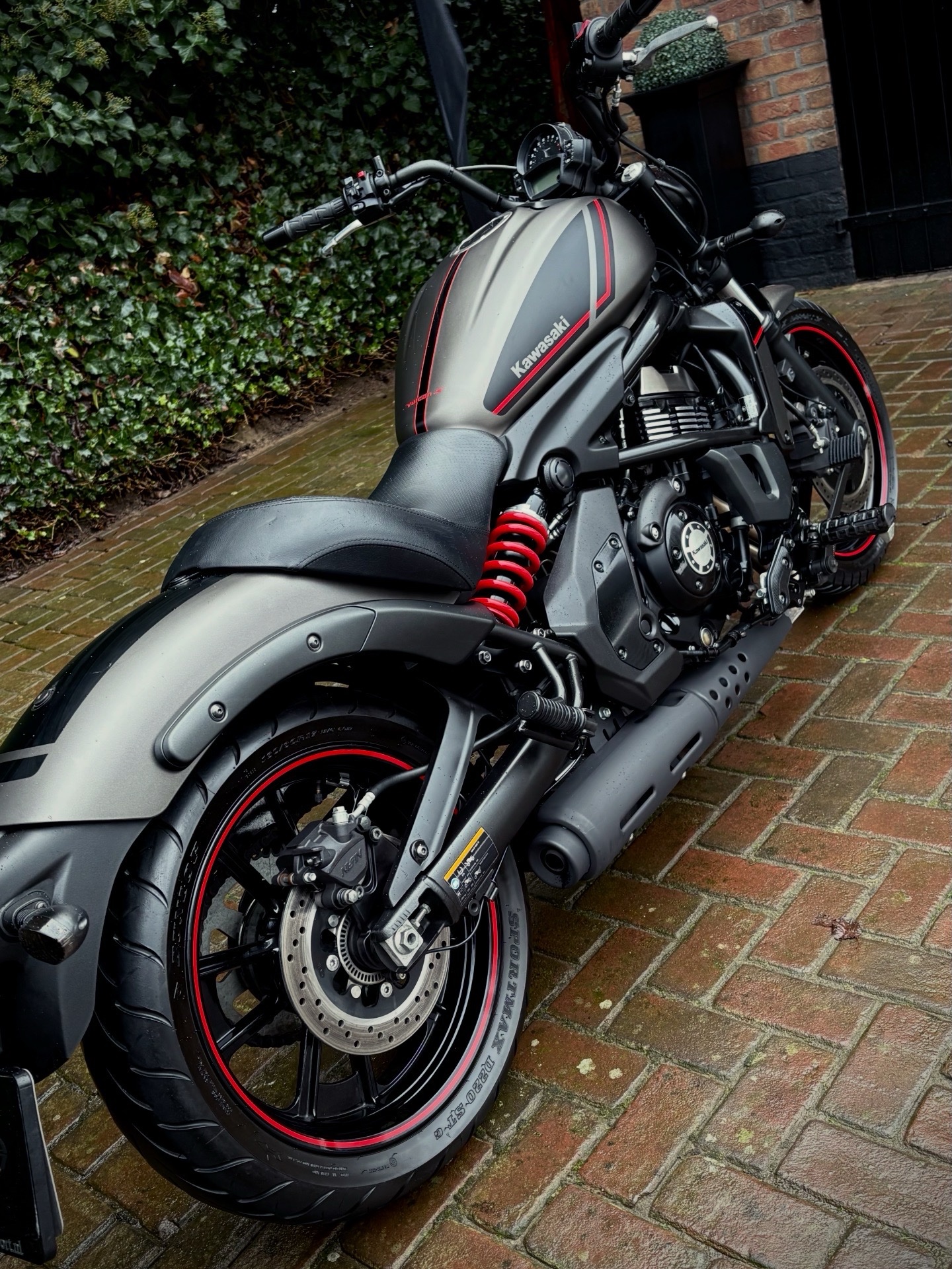 Deze Vulcan Special Editon is uitgevoerd in de gave kleurstelling Metallic Flat Raw Greystone in combinatie met hoogglans zwart en rode accenten, wat de motor een sportieve uitstraling geeft!