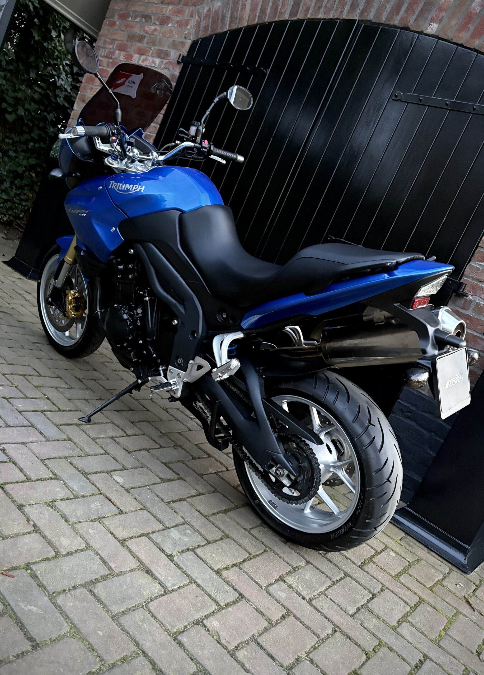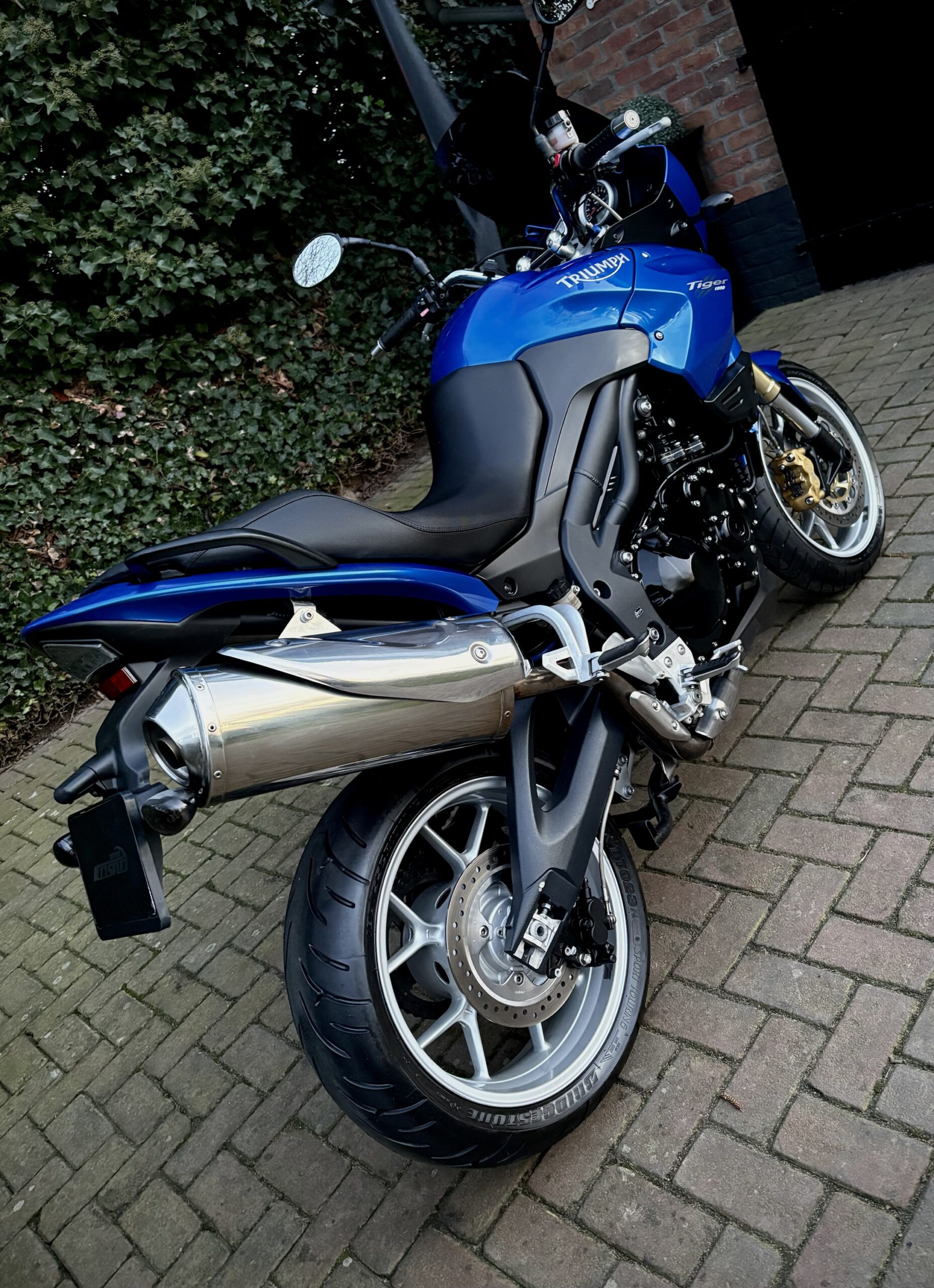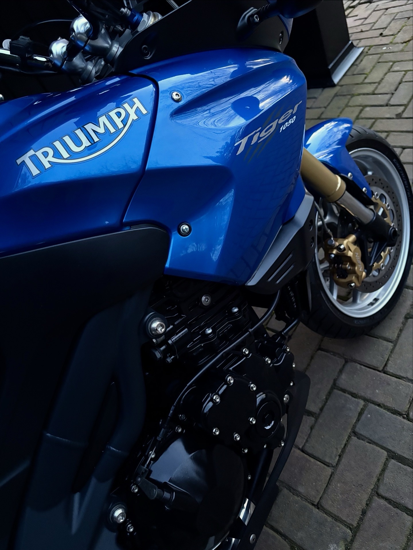 Uitgevoerd in de prachtige originele kleur Caspian Blue Metallic. De krachtige 1050cc driecilinder levert een heerlijke soepele acceleratie en een fantastisch geluid. De Tiger stuurt licht en stabiel.