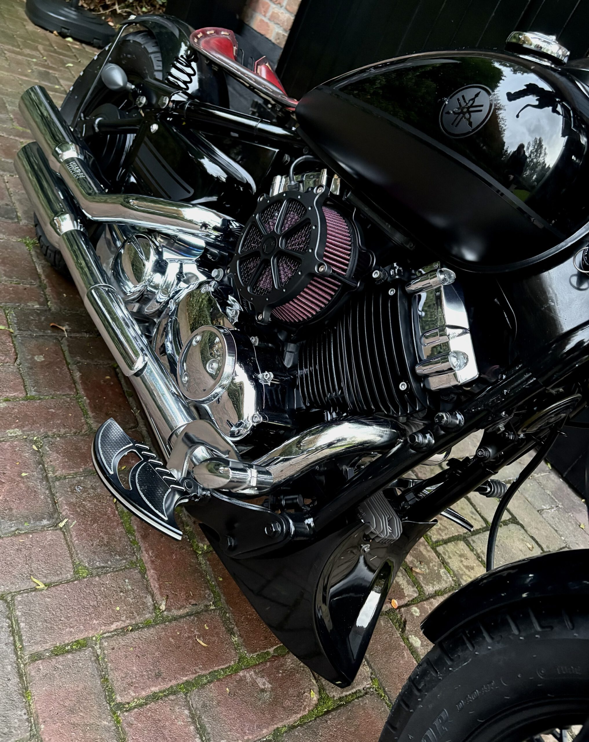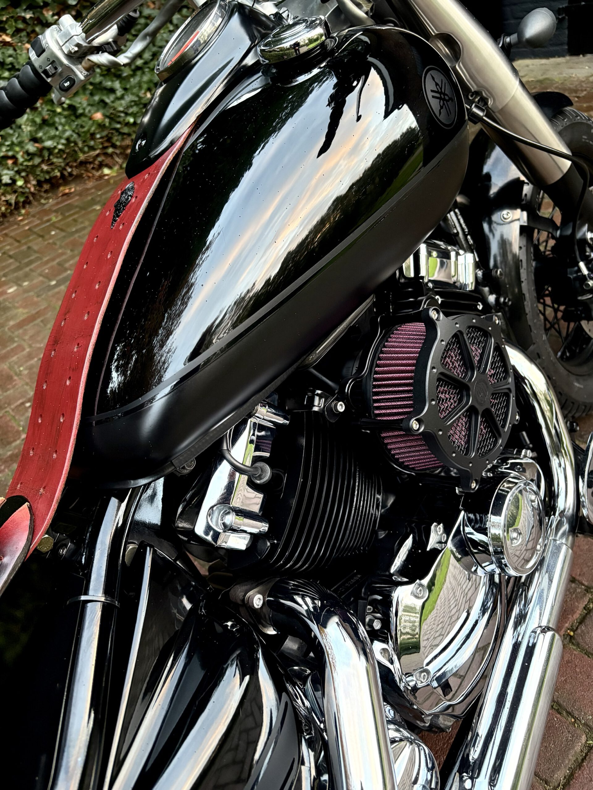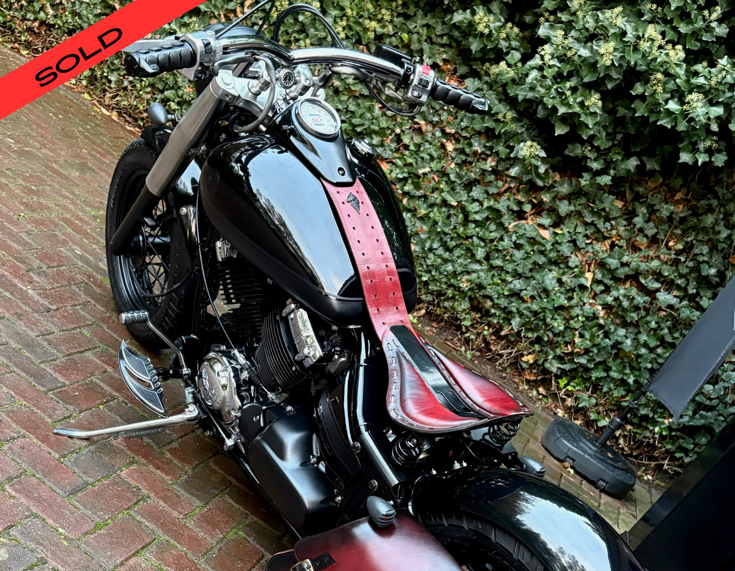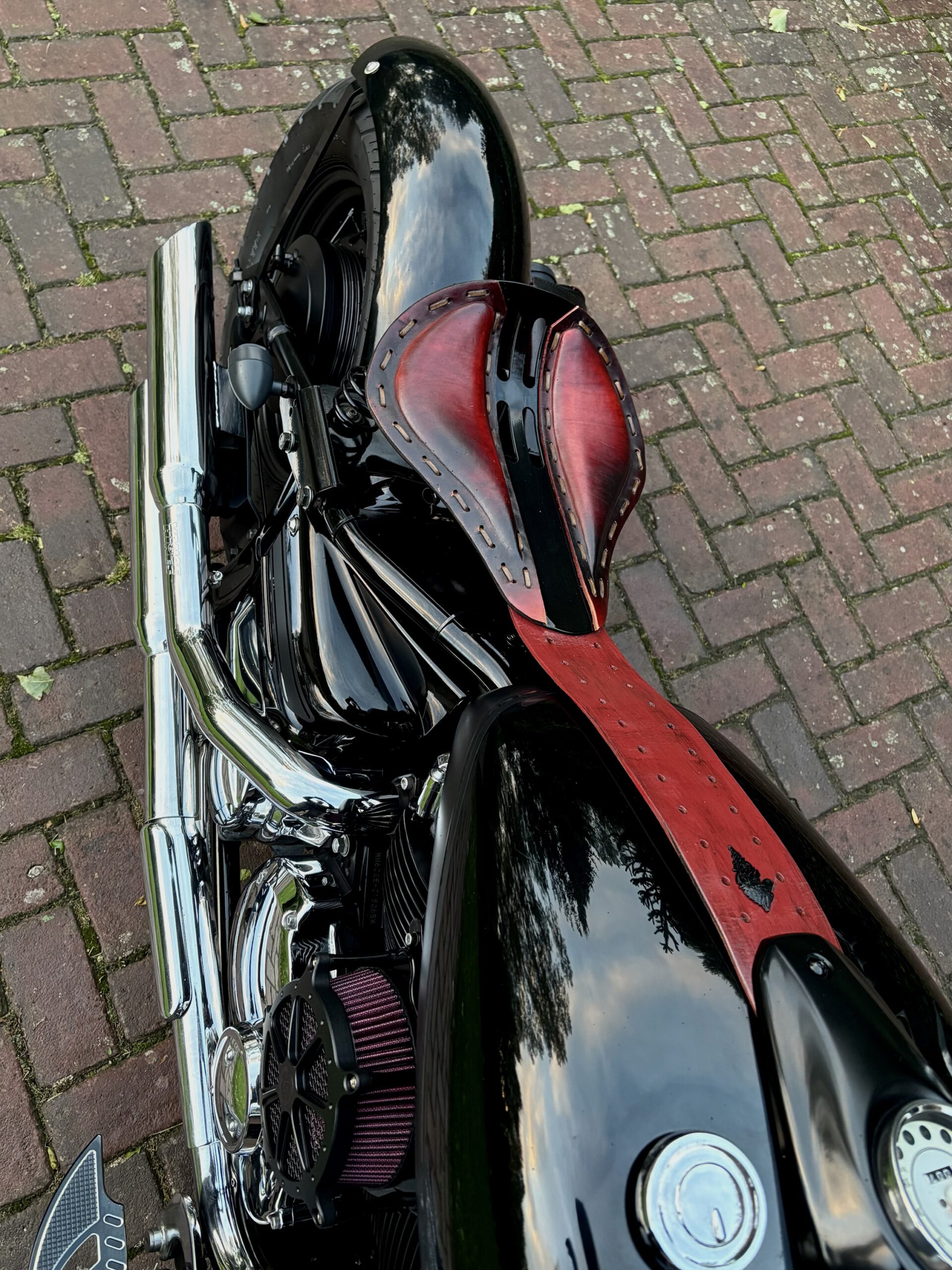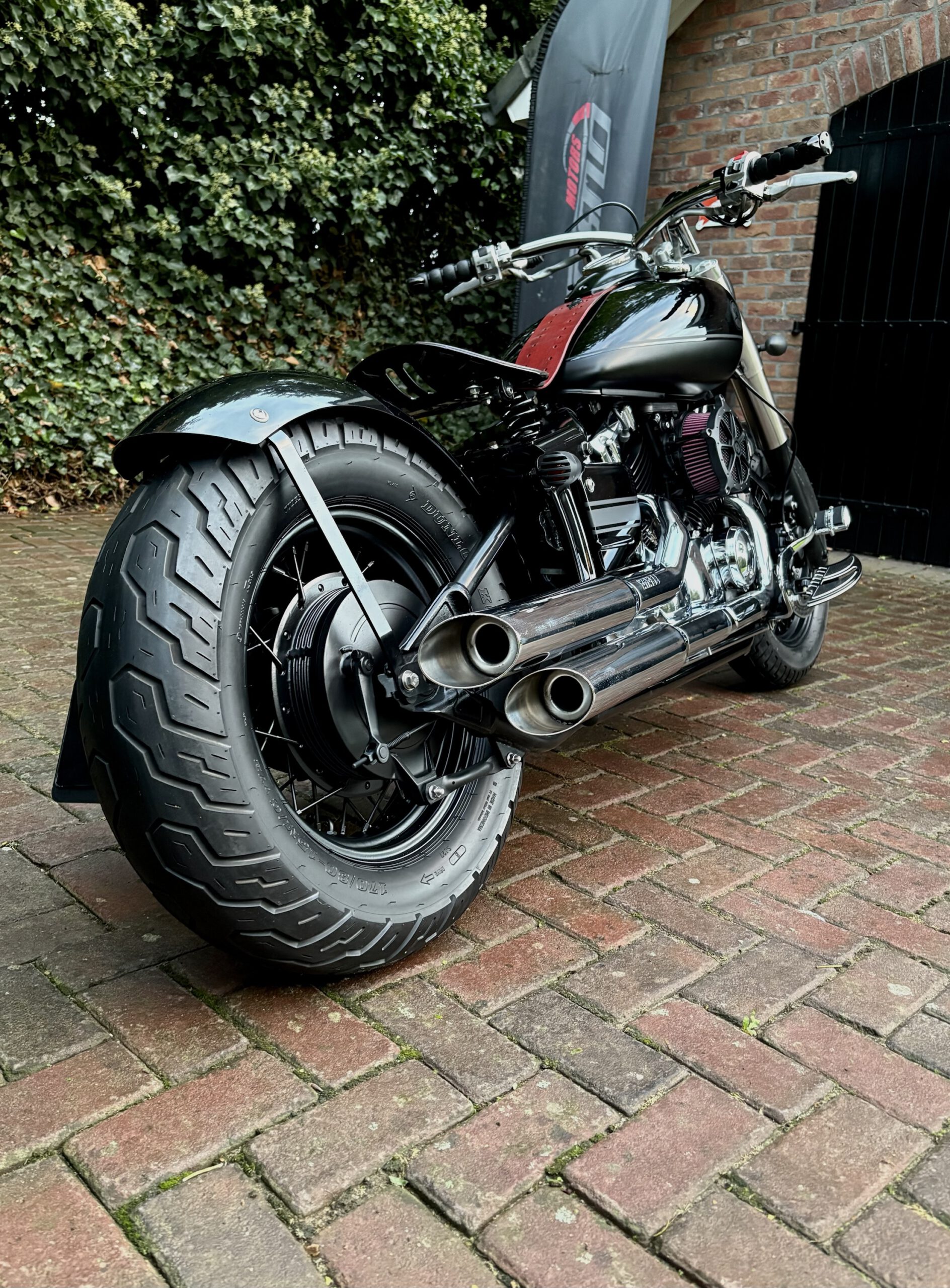 Zeer mooie Dragstar welke stijlvol is omgebouwd tot bobber, uitgevoerd in hoogglans zwart gecombineerd met matzwart en mooie lederen accessoires. Voorzien van complete professionele Bobbercycle ombouwset.