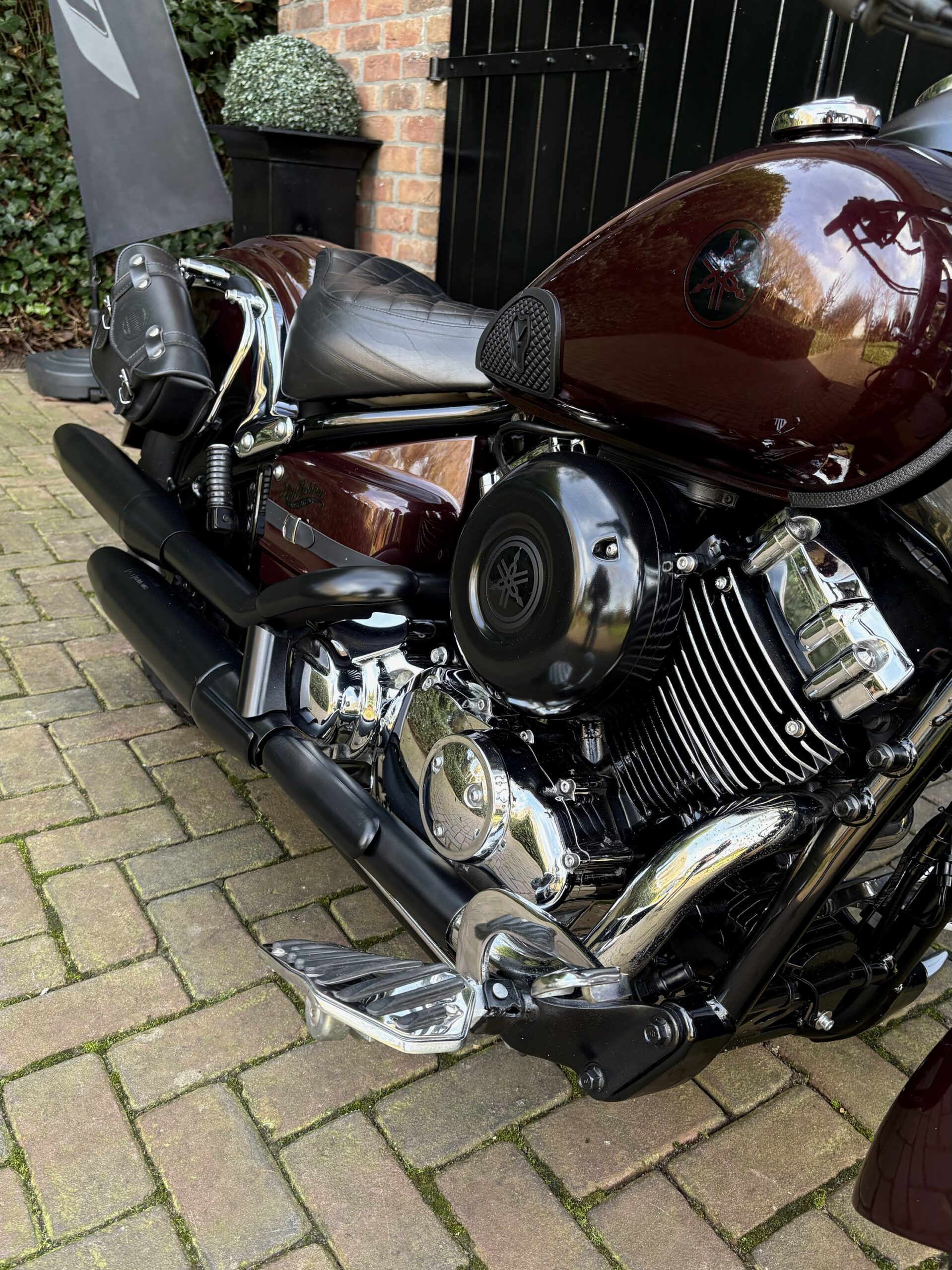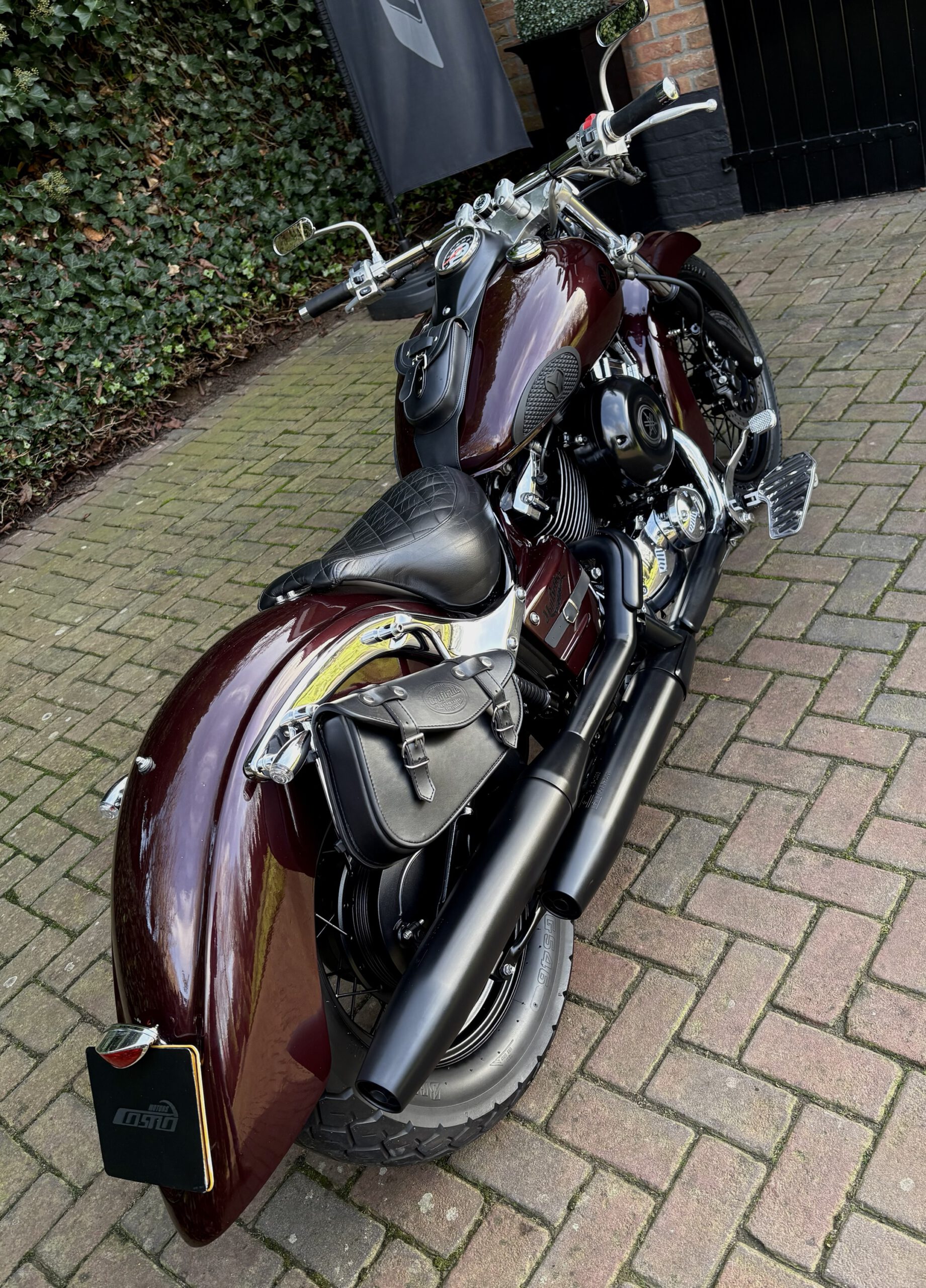 Zo zijn onder andere de spatborden verlaagd voor de juiste looks en is de motor opnieuw gespoten in de prachtige klassieke bruin / aubergine metallic kleur.