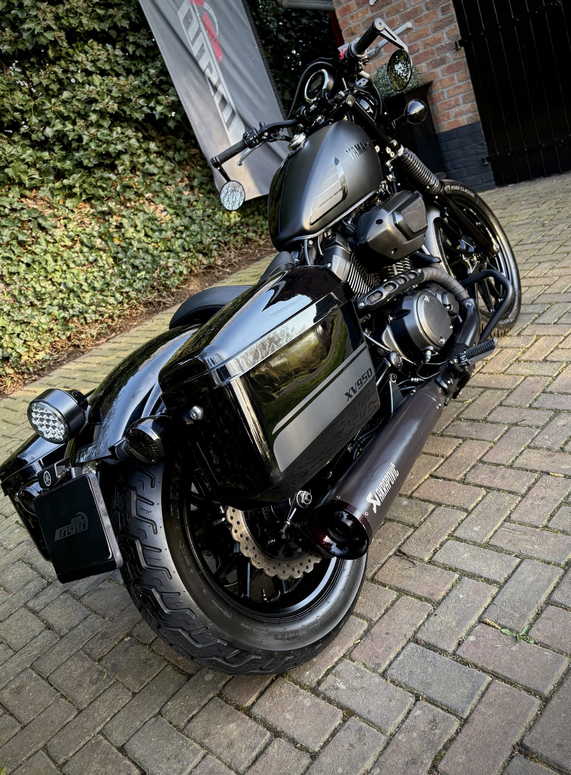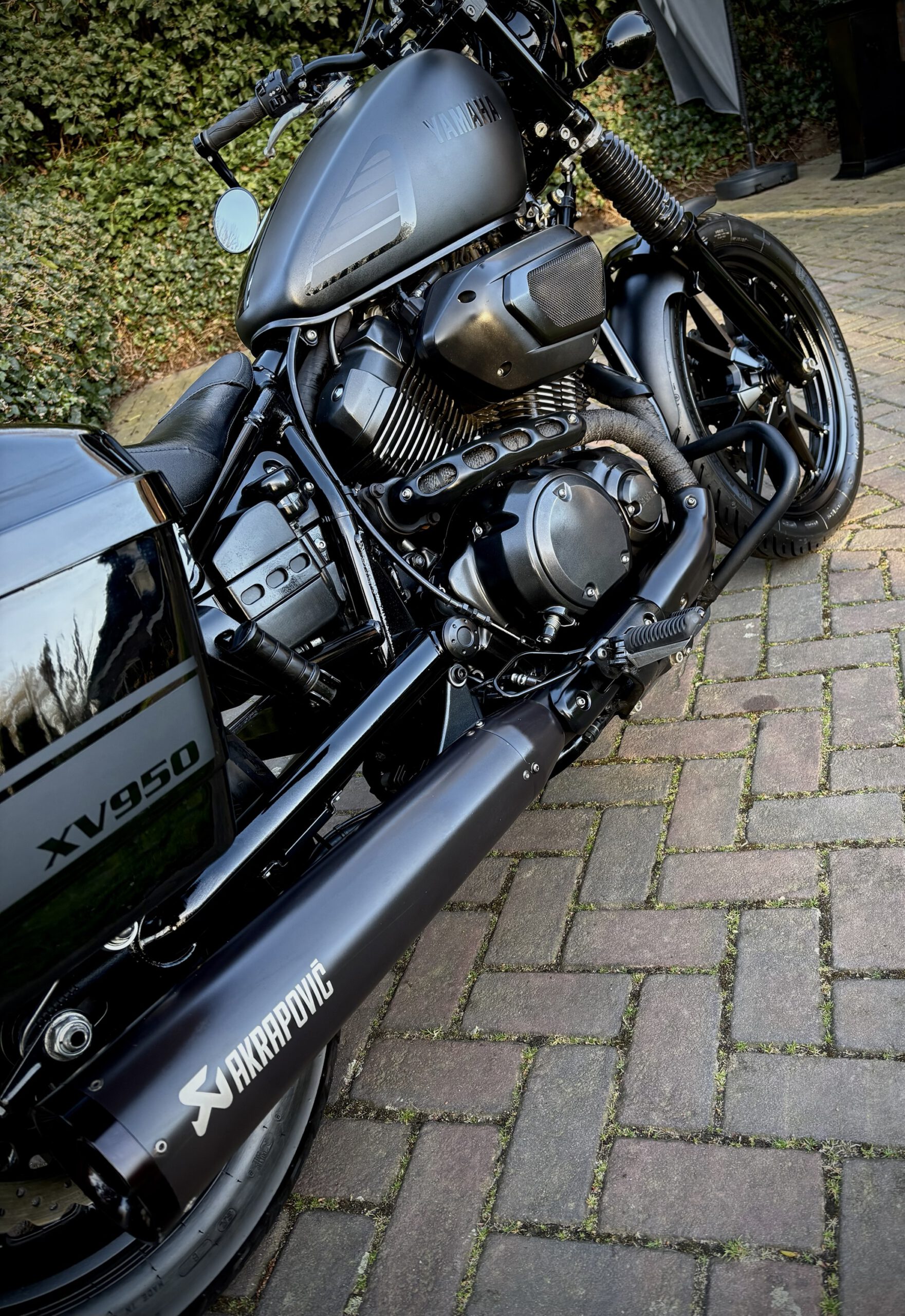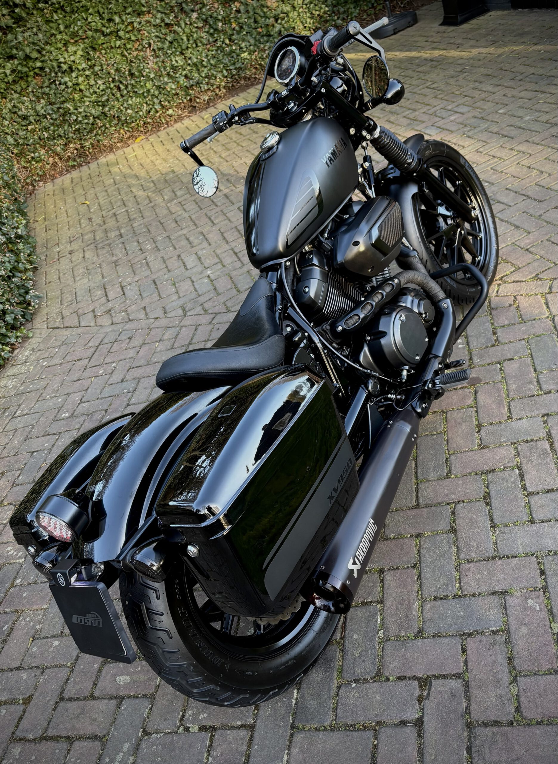 Deze XV950R is custom uitgevoerd in Matt Black, gecombineerd met hoogglans delen, waardoor de motor een gave uitstraling heeft gekregen!