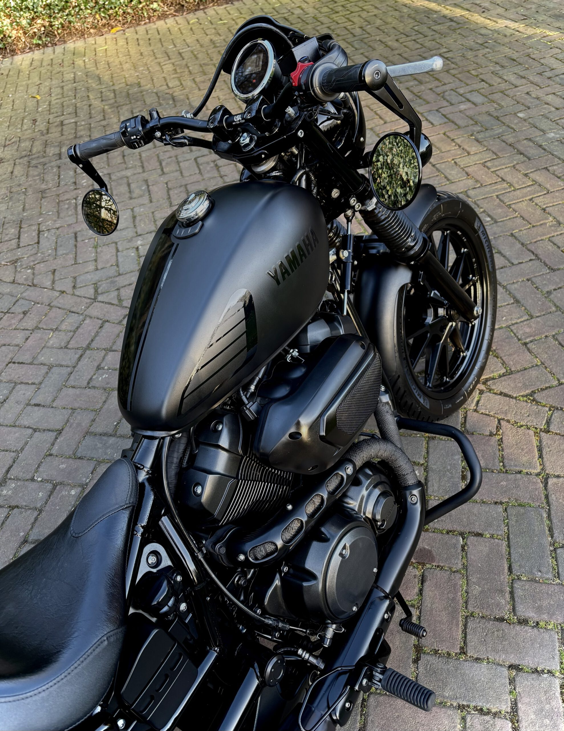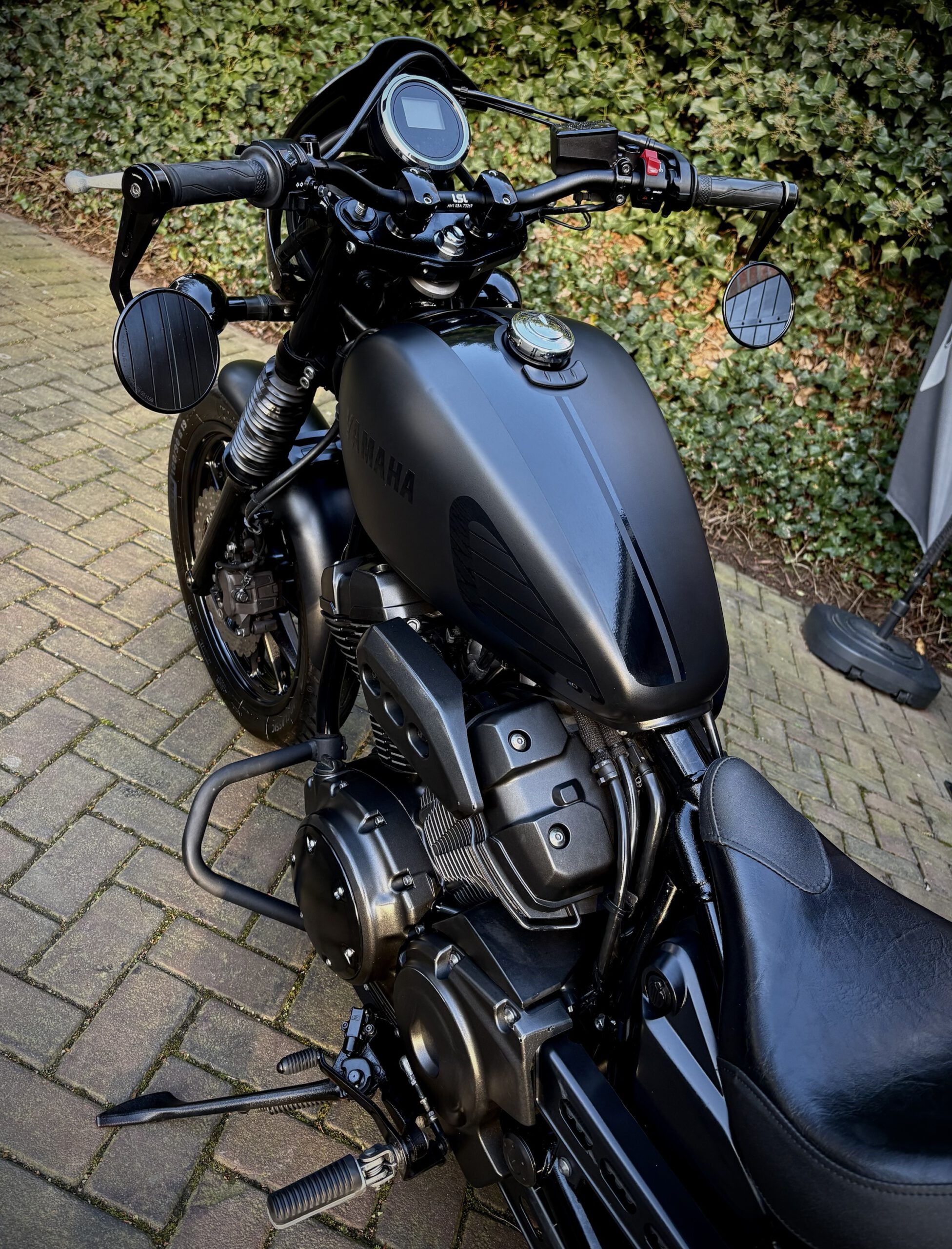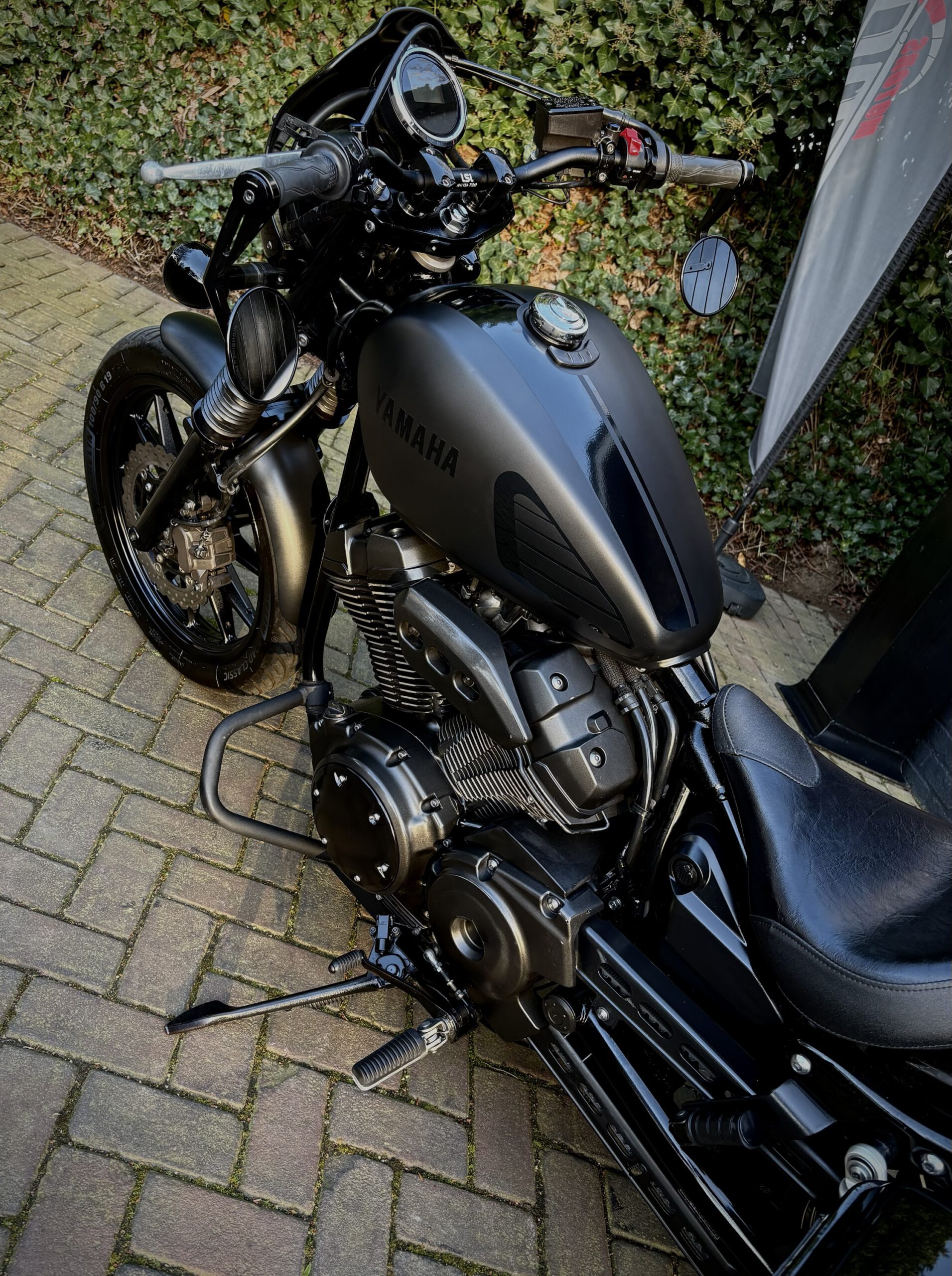 Deze XV950R is custom uitgevoerd in Matt Black, gecombineerd met hoogglans delen, waardoor de motor een gave uitstraling heeft gekregen!