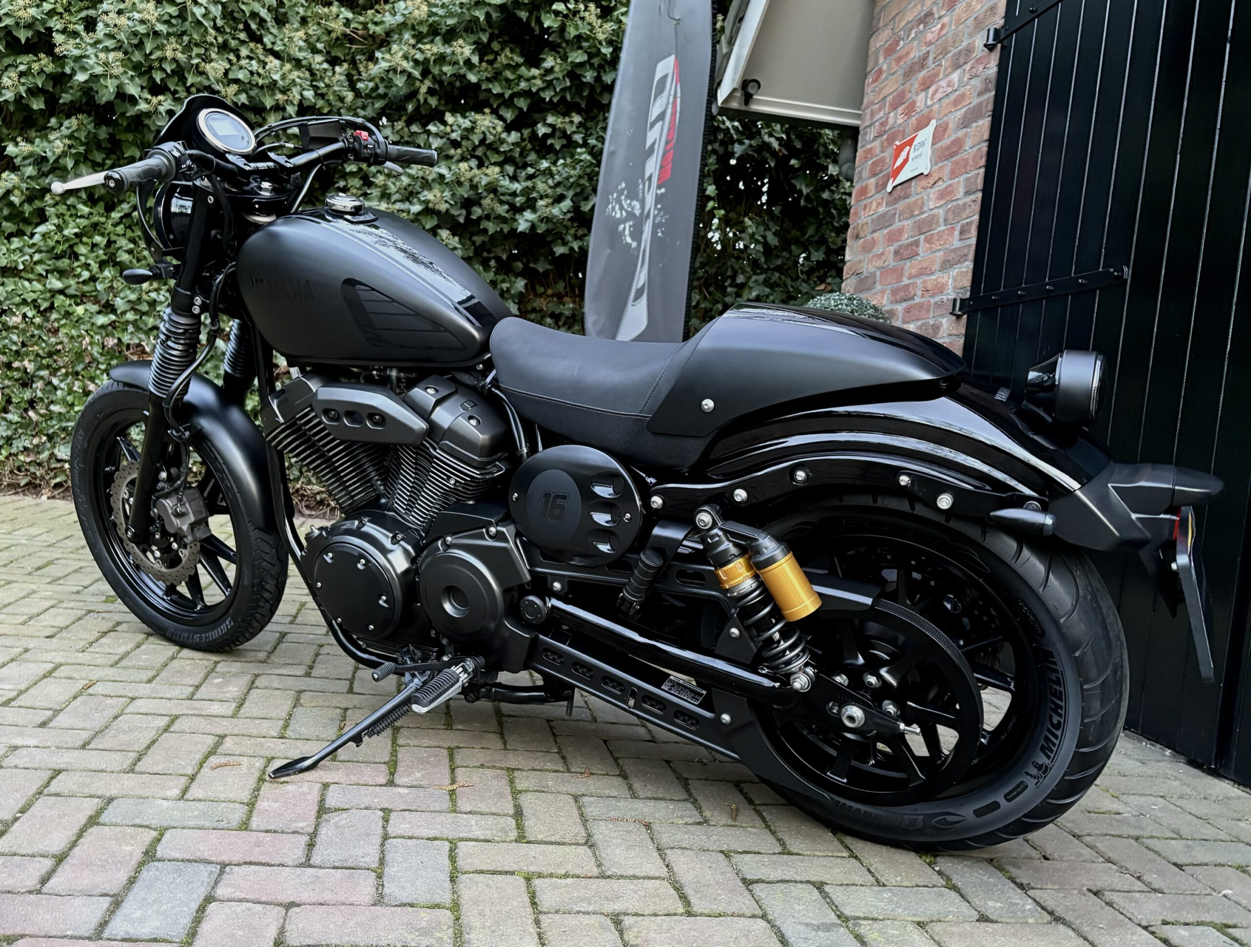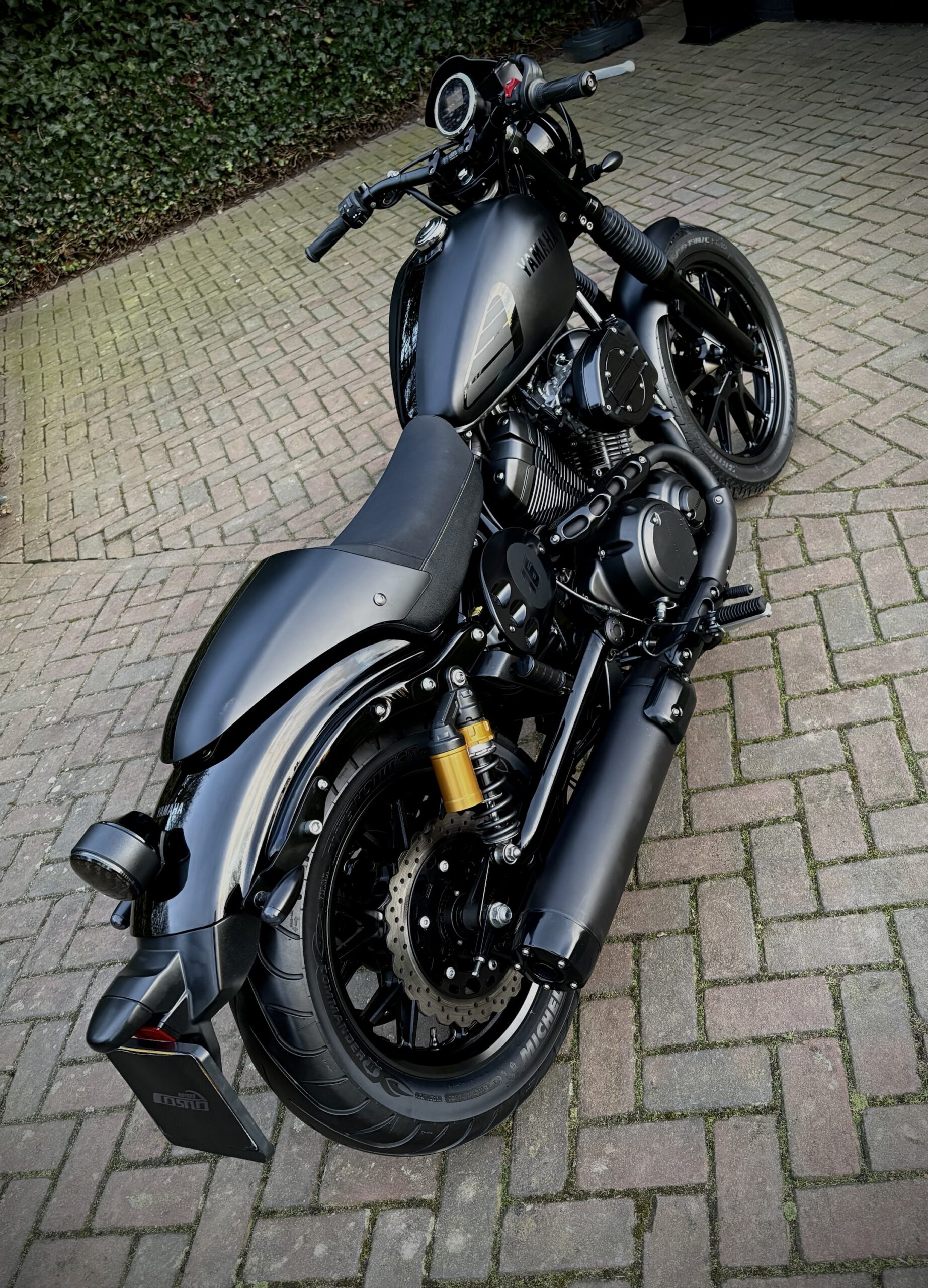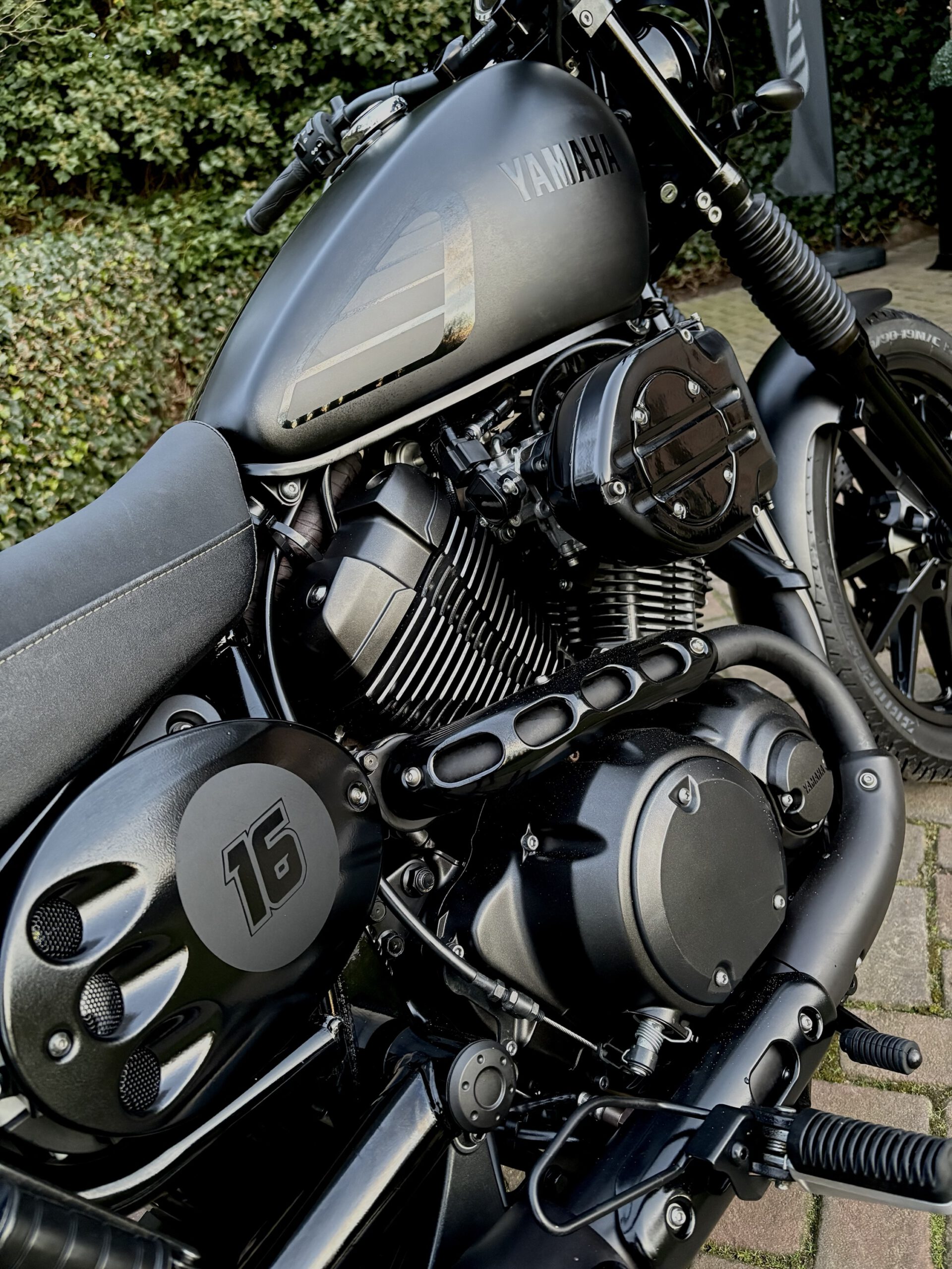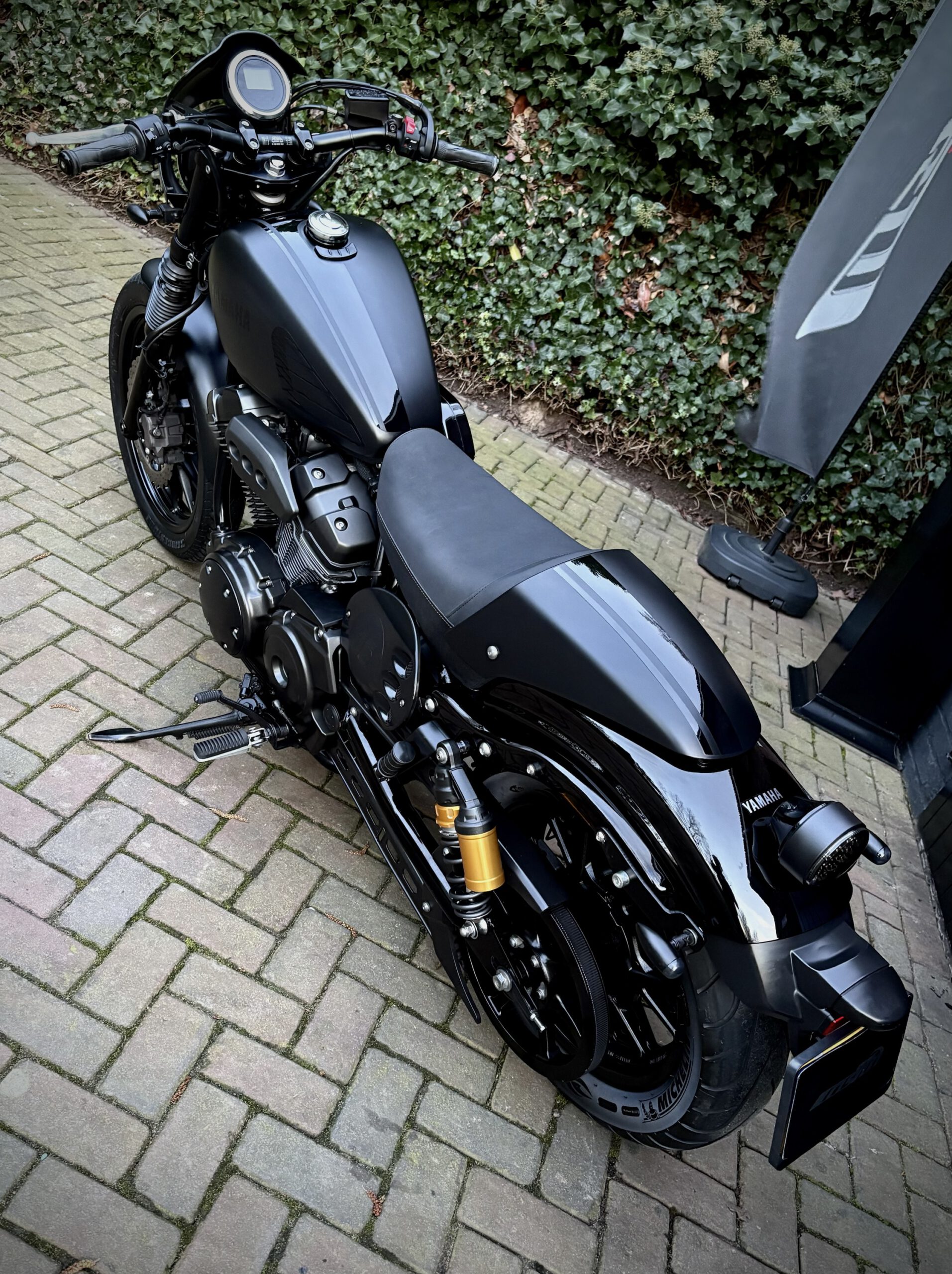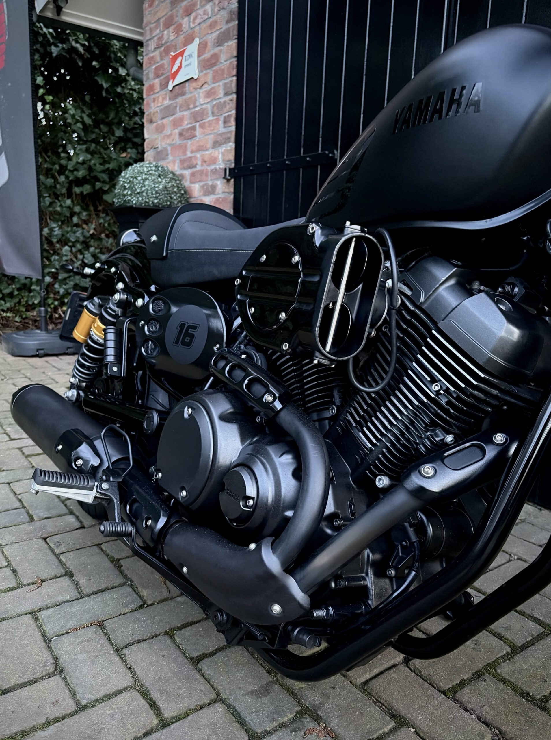 Uniek uitgevoerde XV950 in Matt Black, gecombineerd met hoogglans zwarte onderdelen, waardoor deze motor een gave uitstraling heeft gekregen!