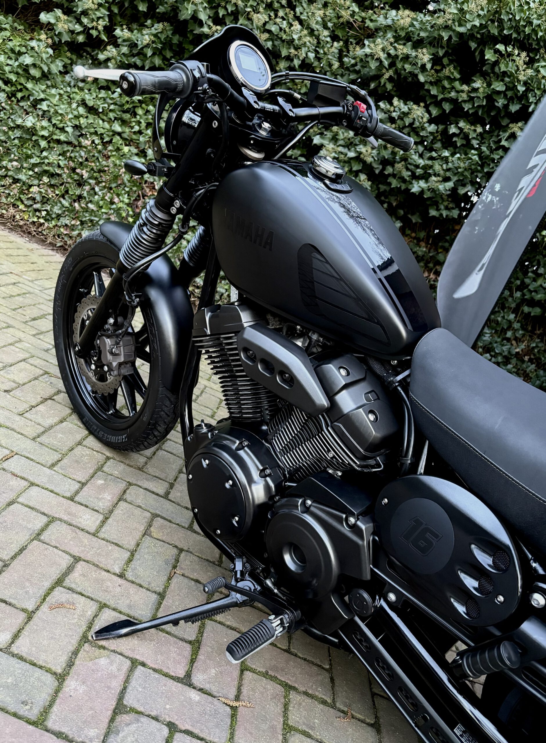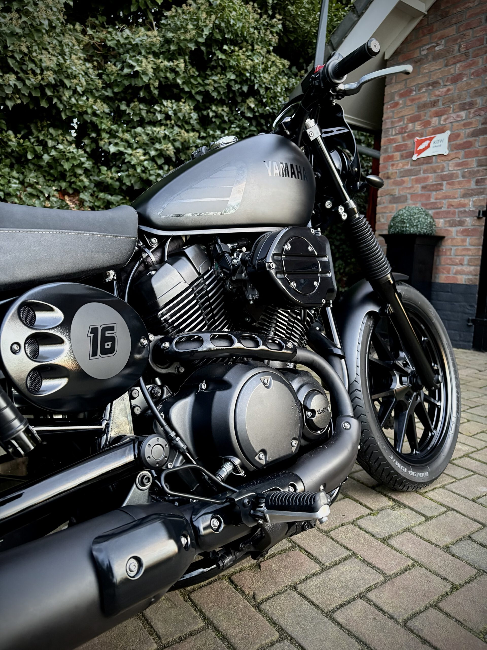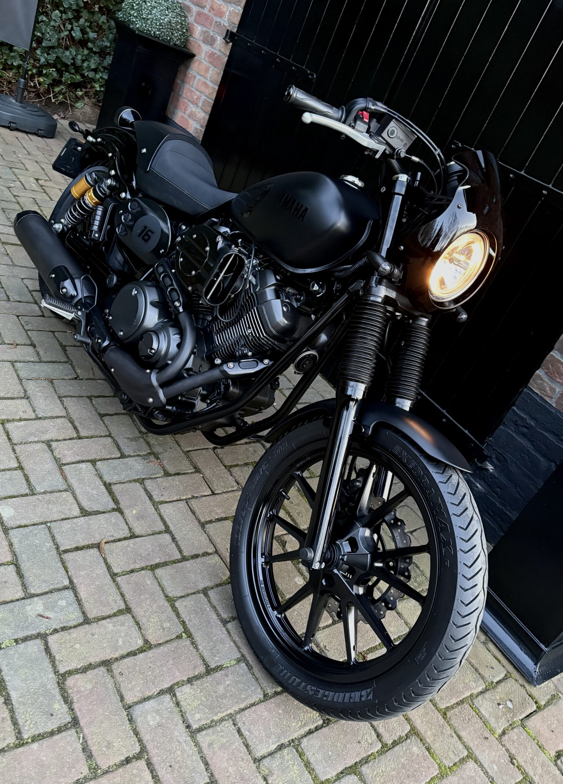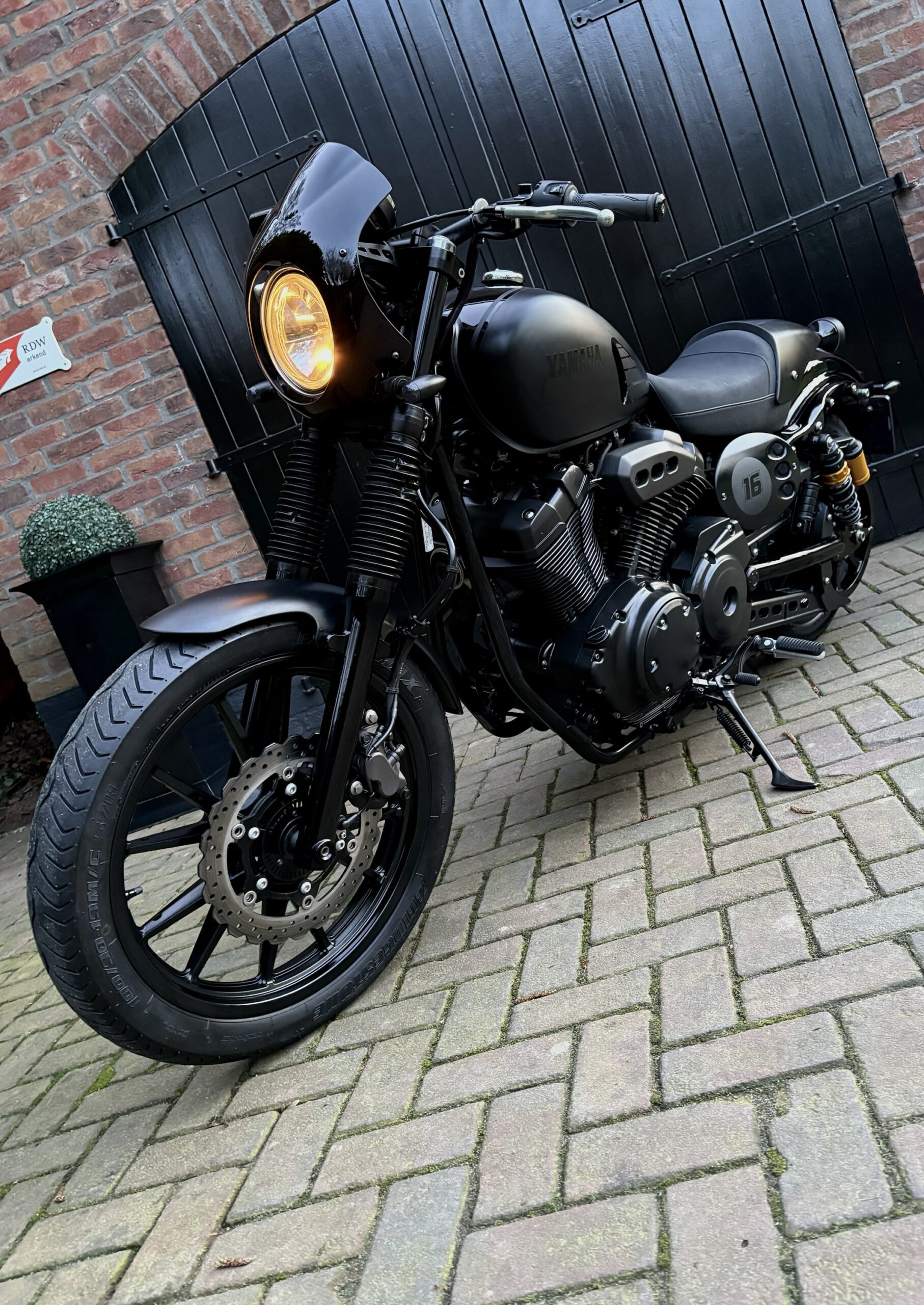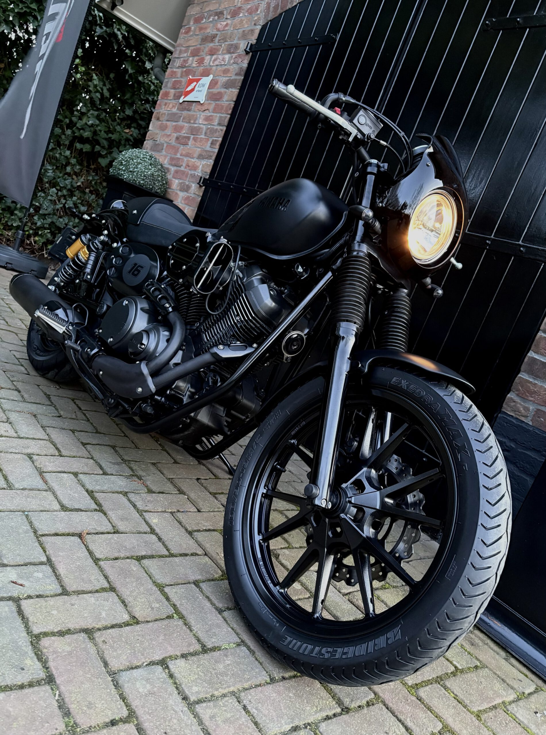 Uniek uitgevoerde XV950 in Matt Black, gecombineerd met hoogglans zwarte onderdelen, waardoor deze motor een gave uitstraling heeft gekregen!