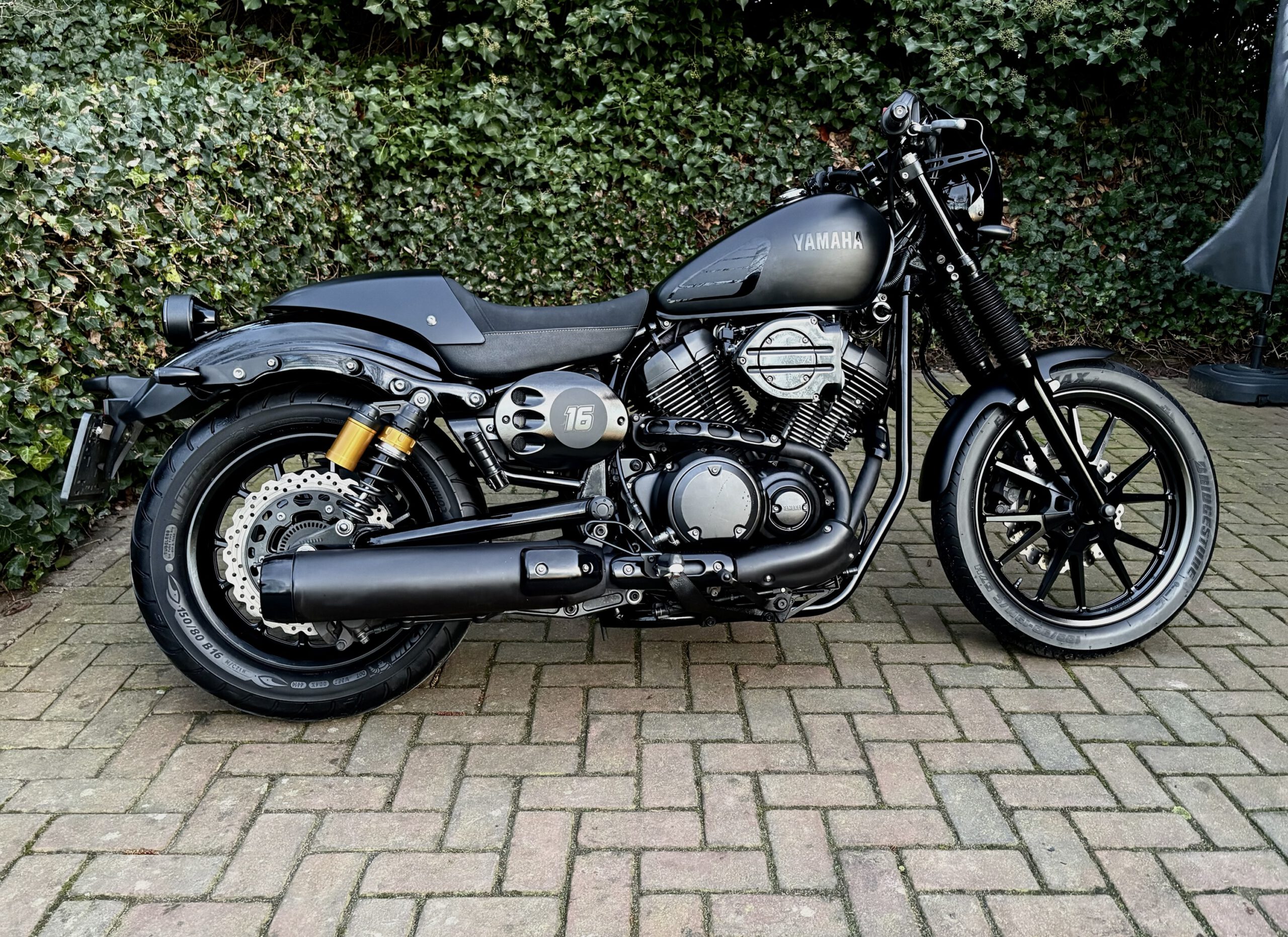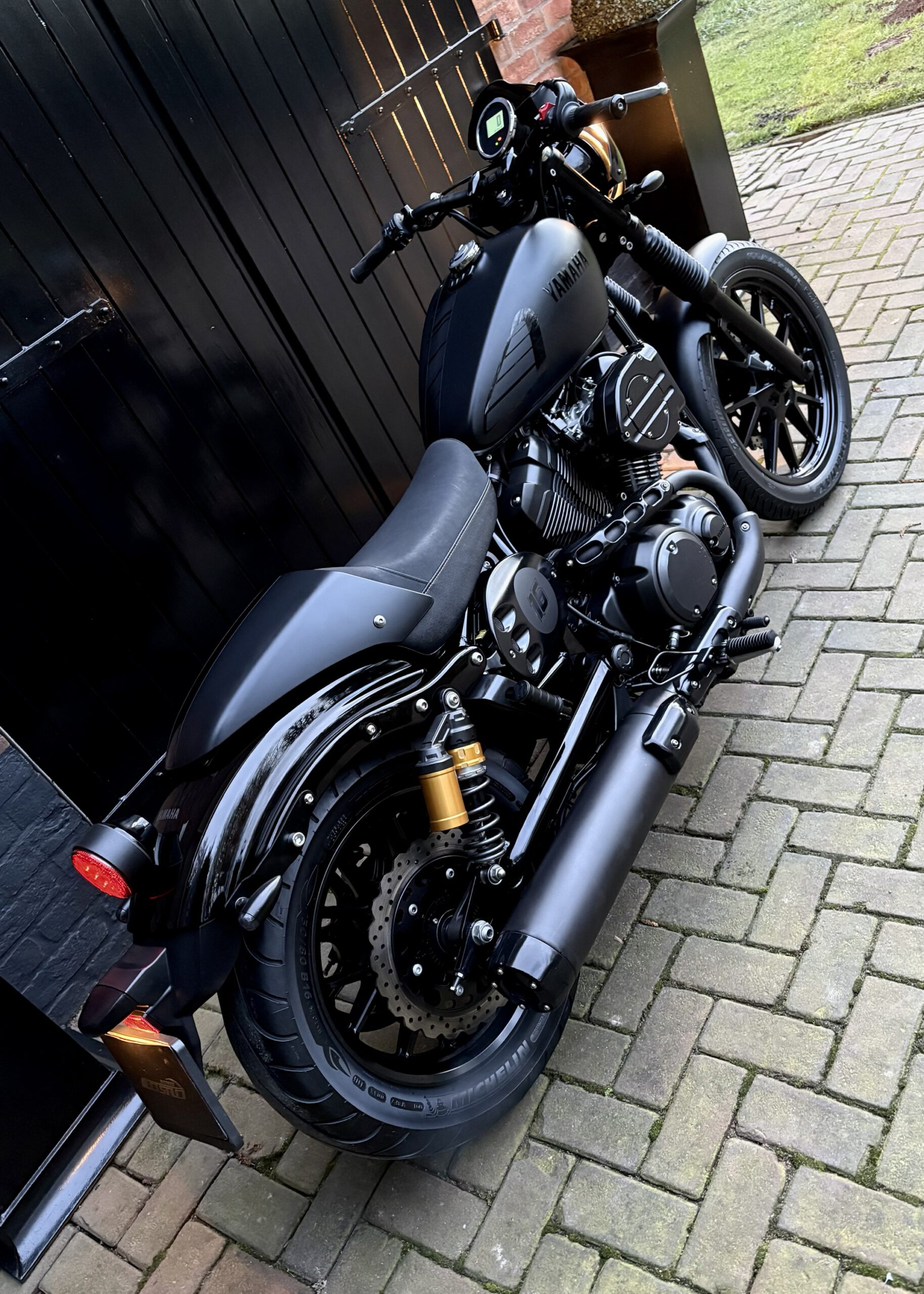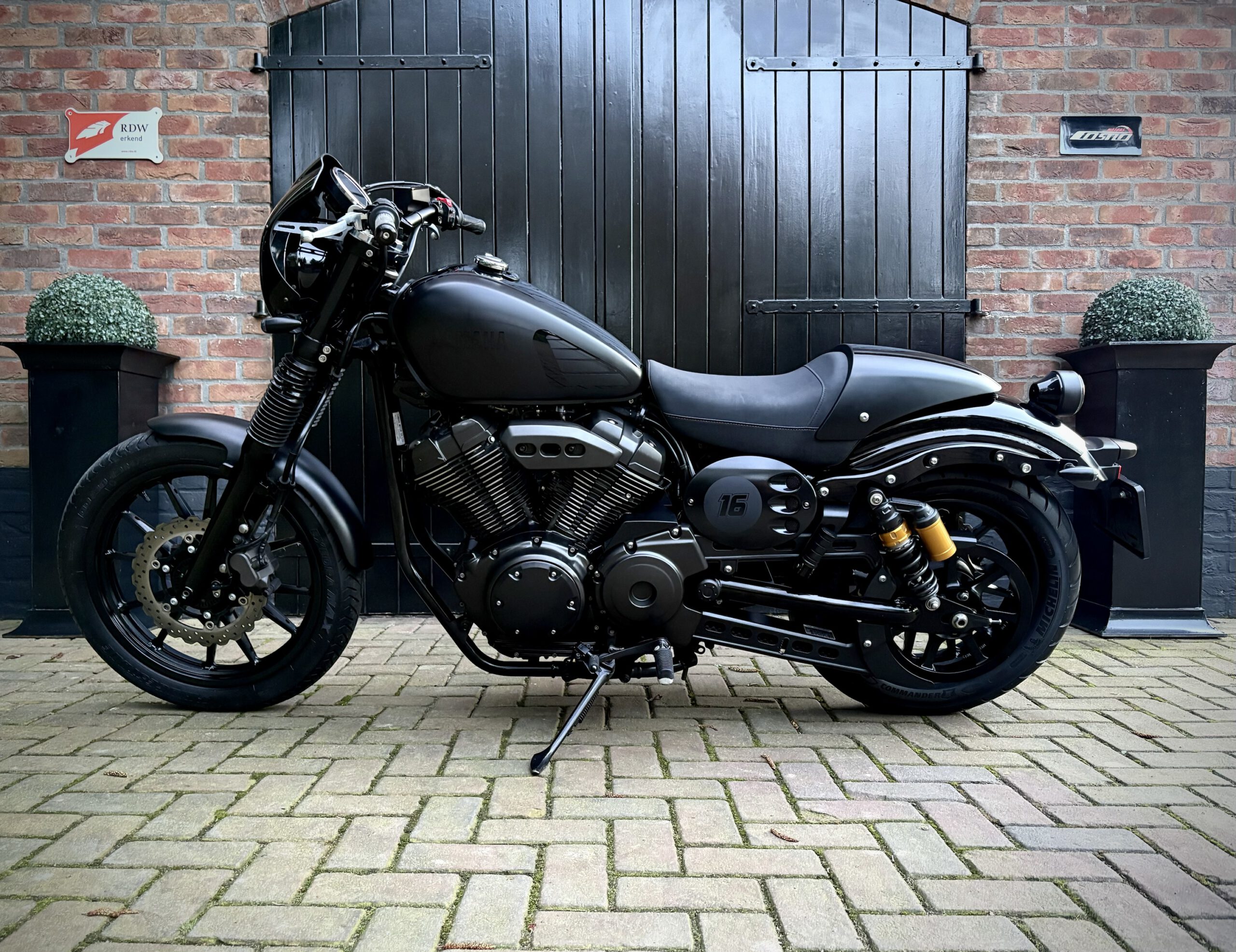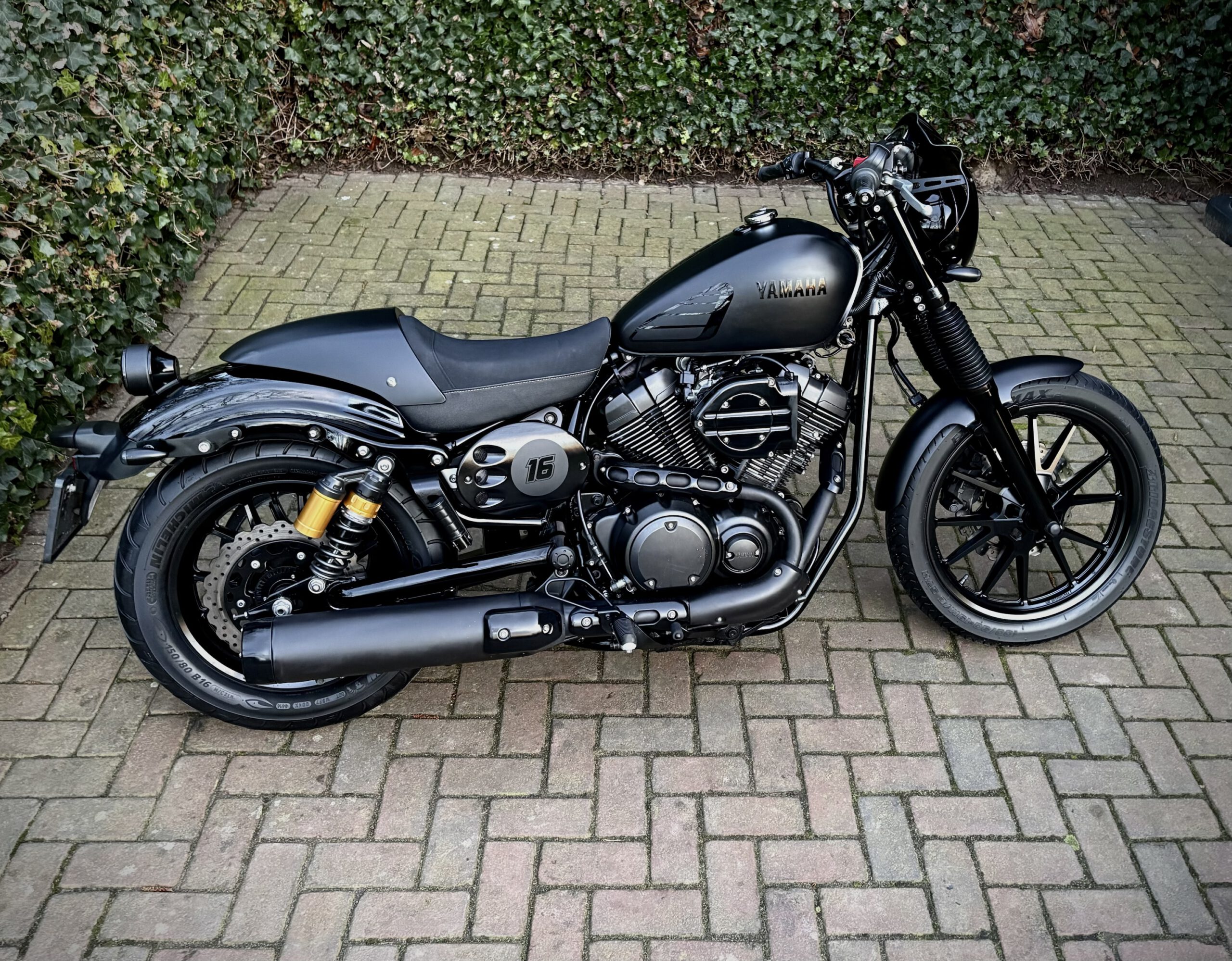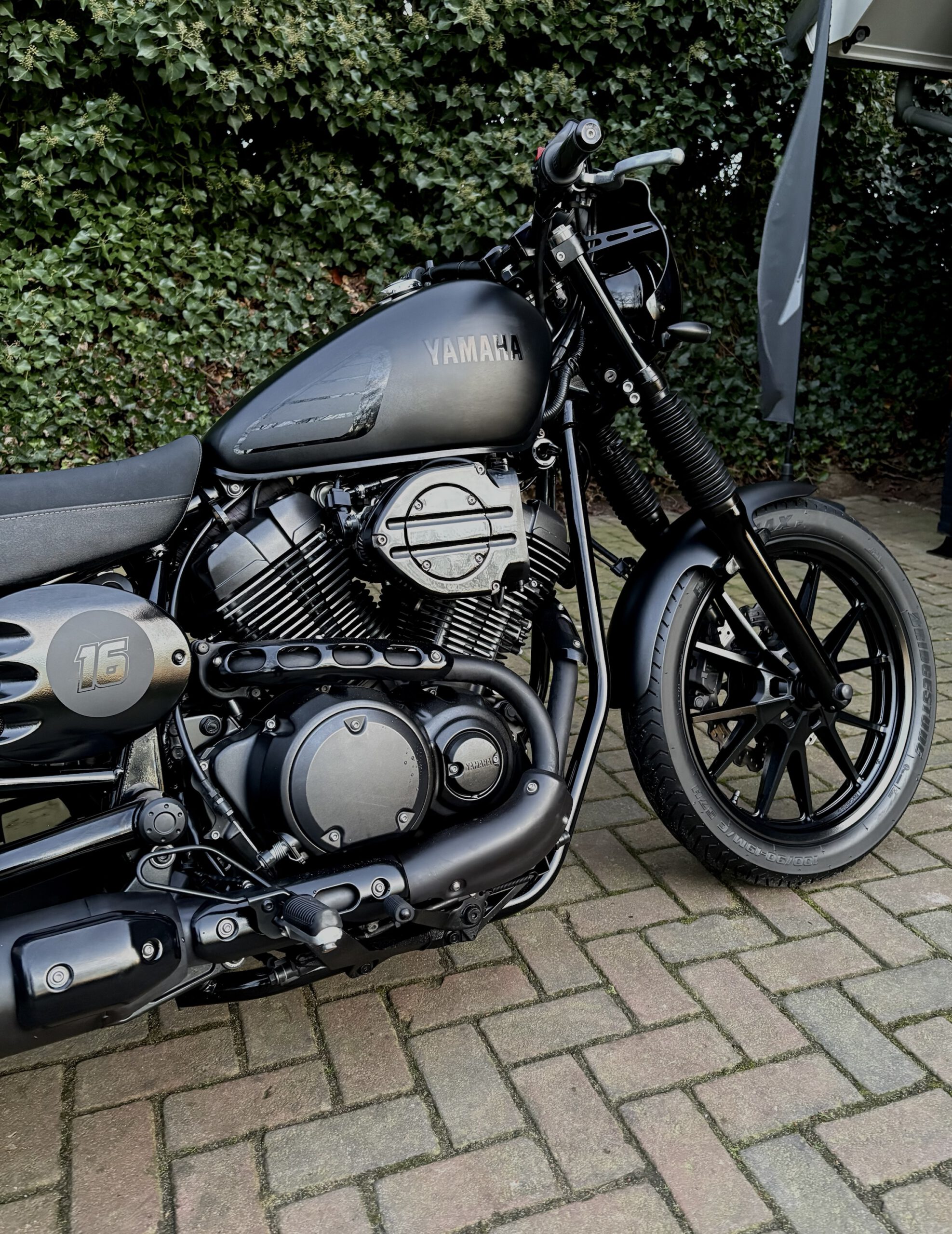 Uniek uitgevoerde XV950 in Matt Black, gecombineerd met hoogglans zwarte onderdelen, waardoor deze motor een gave uitstraling heeft gekregen!